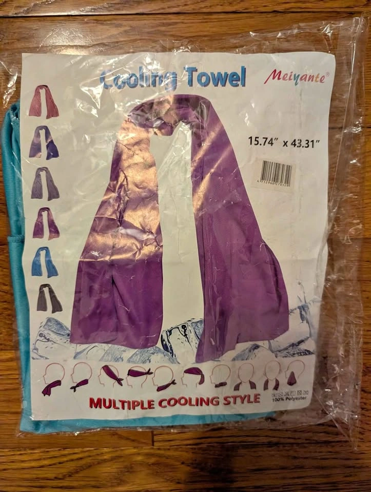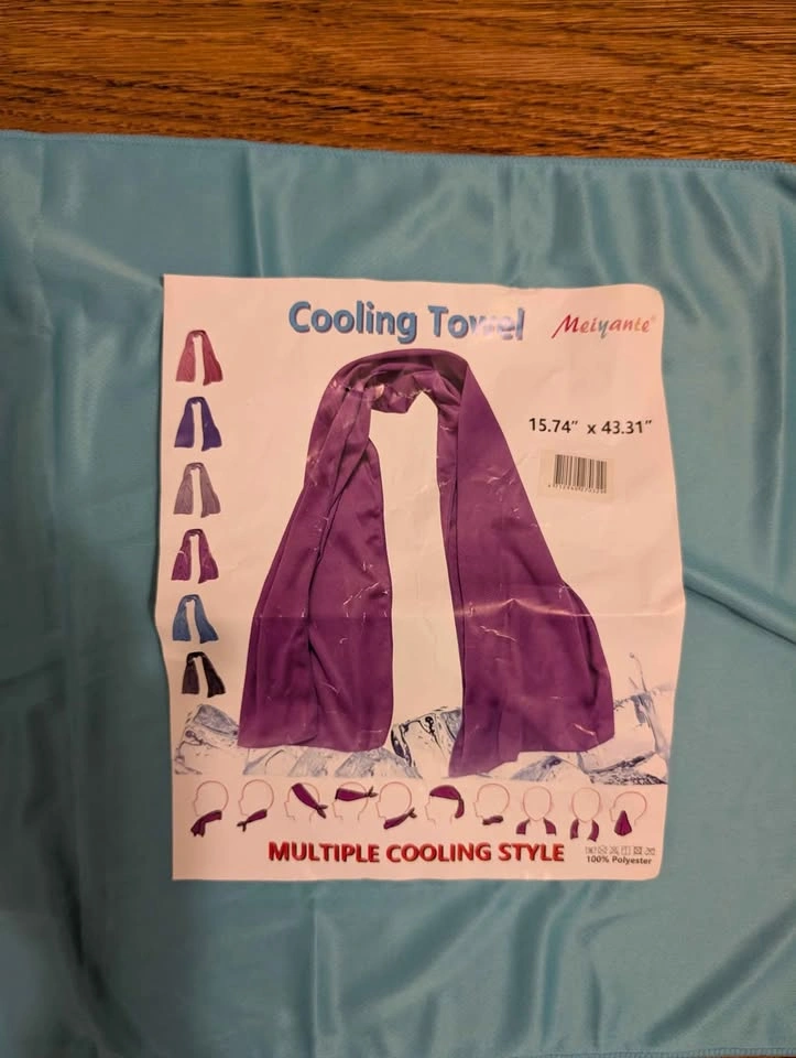 26Cooling towel made of 100% polyester. It's a hyper-evaporative towel that draws sweat away from the skin to provide cooling. It measures 15.7 x 43.3 inches and is designed for running, cycling, gym workouts, etc. North St Catharines pickup, cash only please