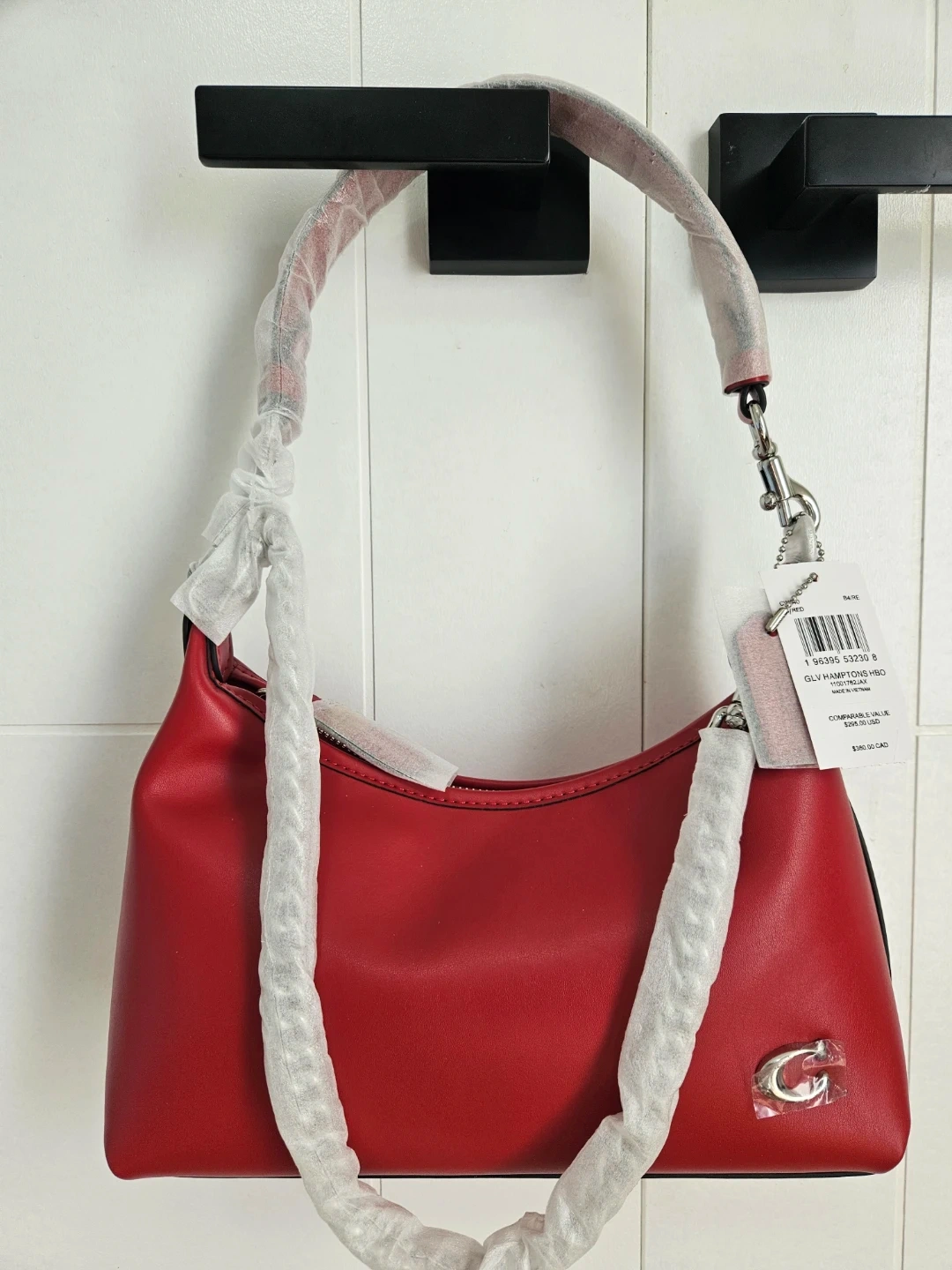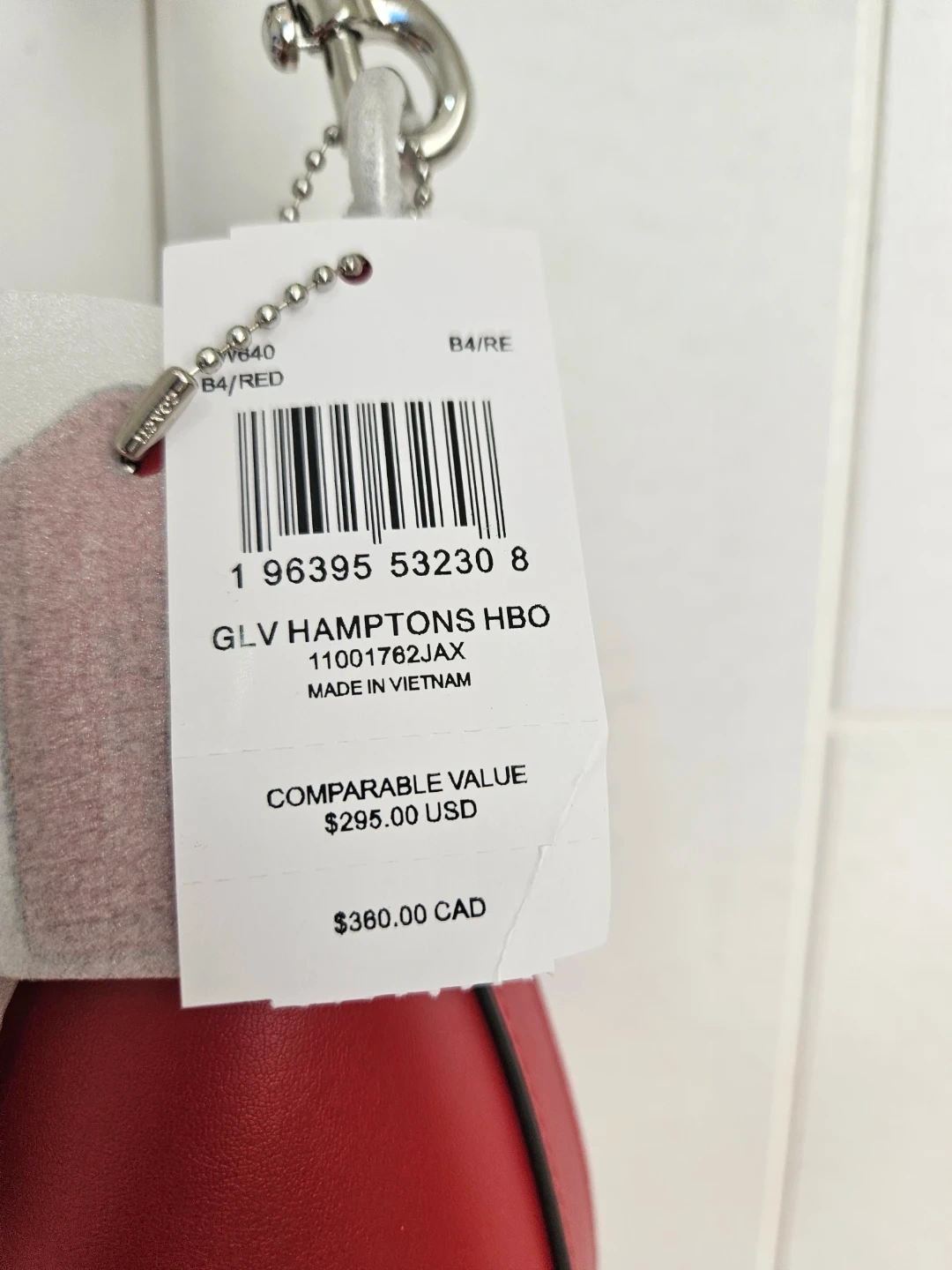 Selling a brand new Coach Hamptons Hobo bag in a beautiful red leather! It's never been used and still has the original tags. The tag shows a comparable value of $295 USD, which is $360 CAD. The bag is a gorgeous red colour and has a stylish design. Don't miss out!