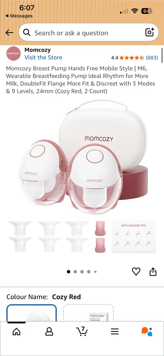 BRAND NEW Momcozy breast pump in Cozy Red. This is a 2 count set, featuring 3 modes and 9 levels. It includes a nipple measure tool and comes with a carrying case. It retails $309 and it has never been used. It’s still in the original packaging.