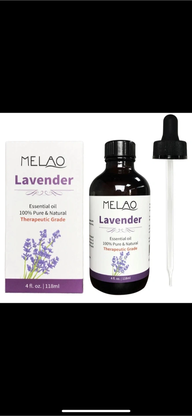10Selling a bottle of MELAO Lavender Essential Oil. It's 100% pure and natural, therapeutic grade, and comes in a 4 fl oz (118ml) bottle. Perfect for aromatherapy, diffuser, or humidifier. The fragrance is fresh and sweet, blending well with other scents, repels mosquitoes, moths, fleas, and other insects