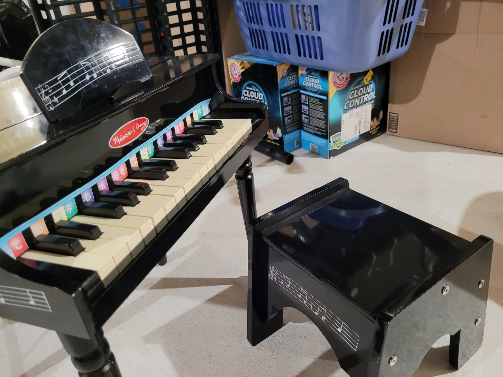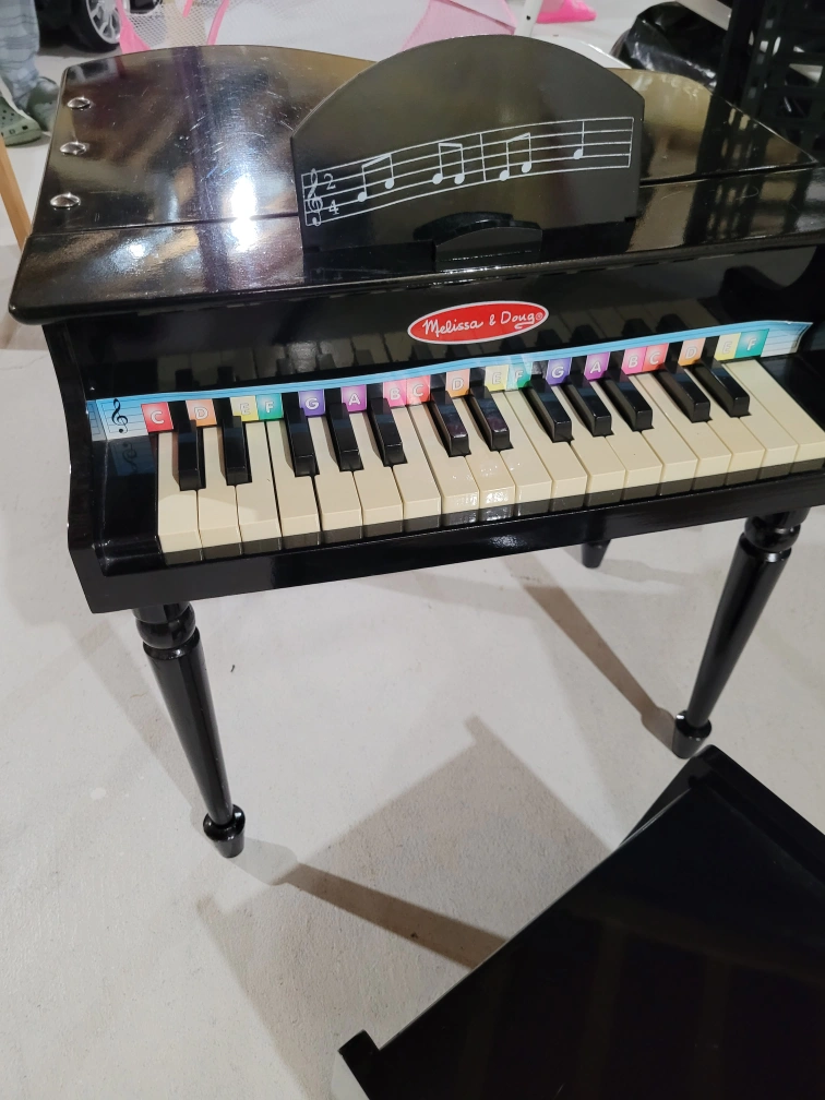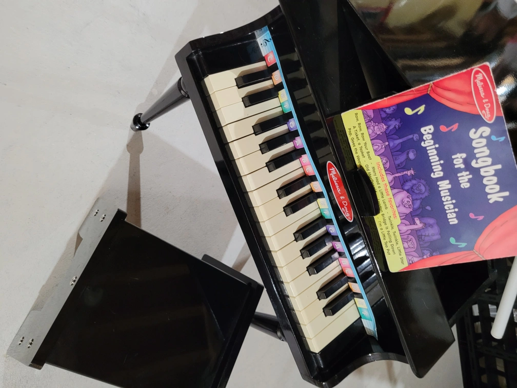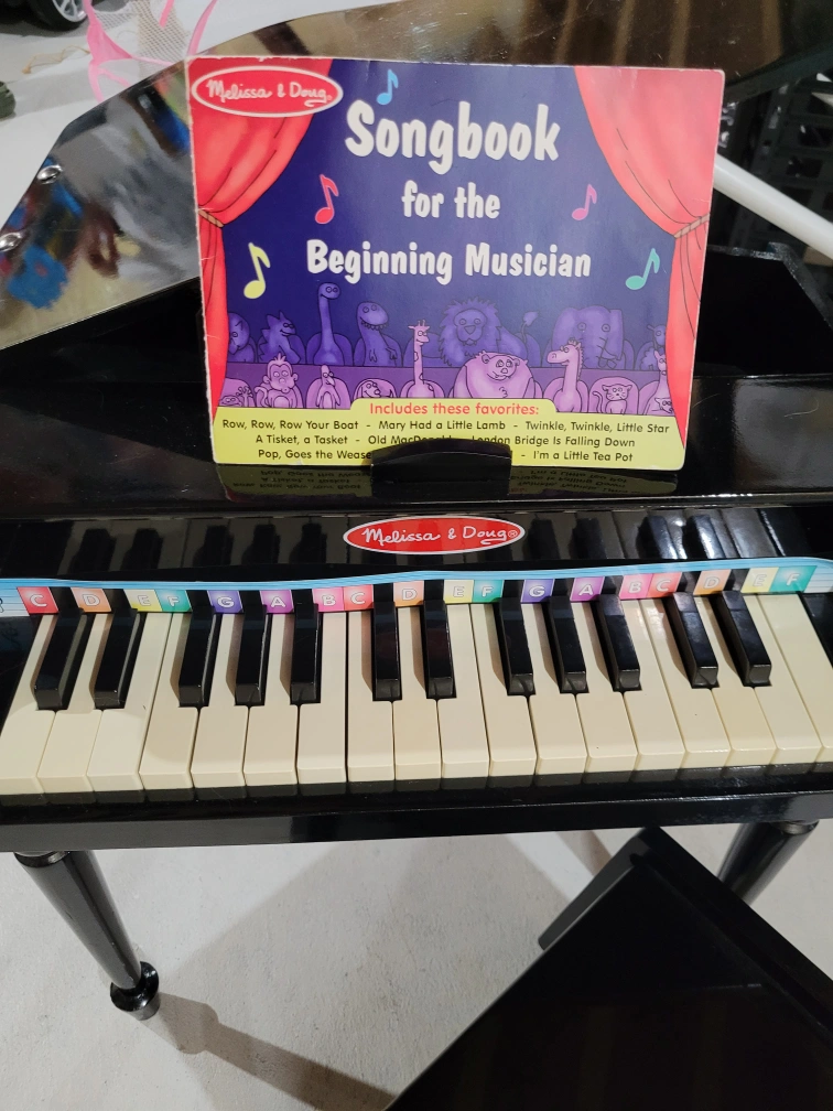 Selling a Melissa & Doug toy grand piano, perfect for a budding musician! It comes with a songbook for the beginning musician. The piano is in good condition and ready for a new home. It's a great way to introduce kids to music and encourage their creativity.