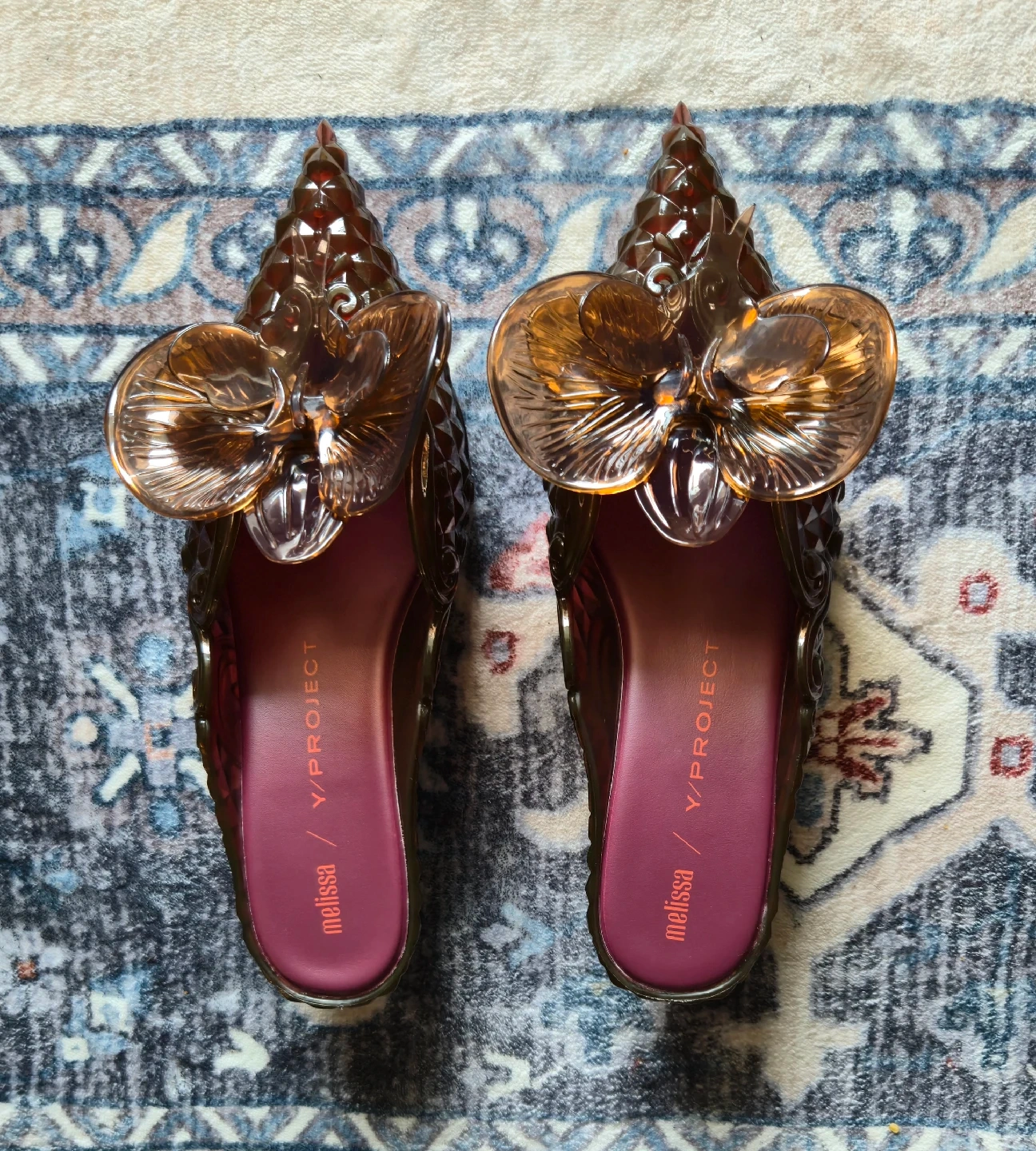 15These unique heels are a collaboration between Melissa and Y/Project! They feature a distinctive floral design and a translucent finish. Size 40 EU women's. Price is Negotiable . Brand New, Never Been Used. Retail Price is $400-$500