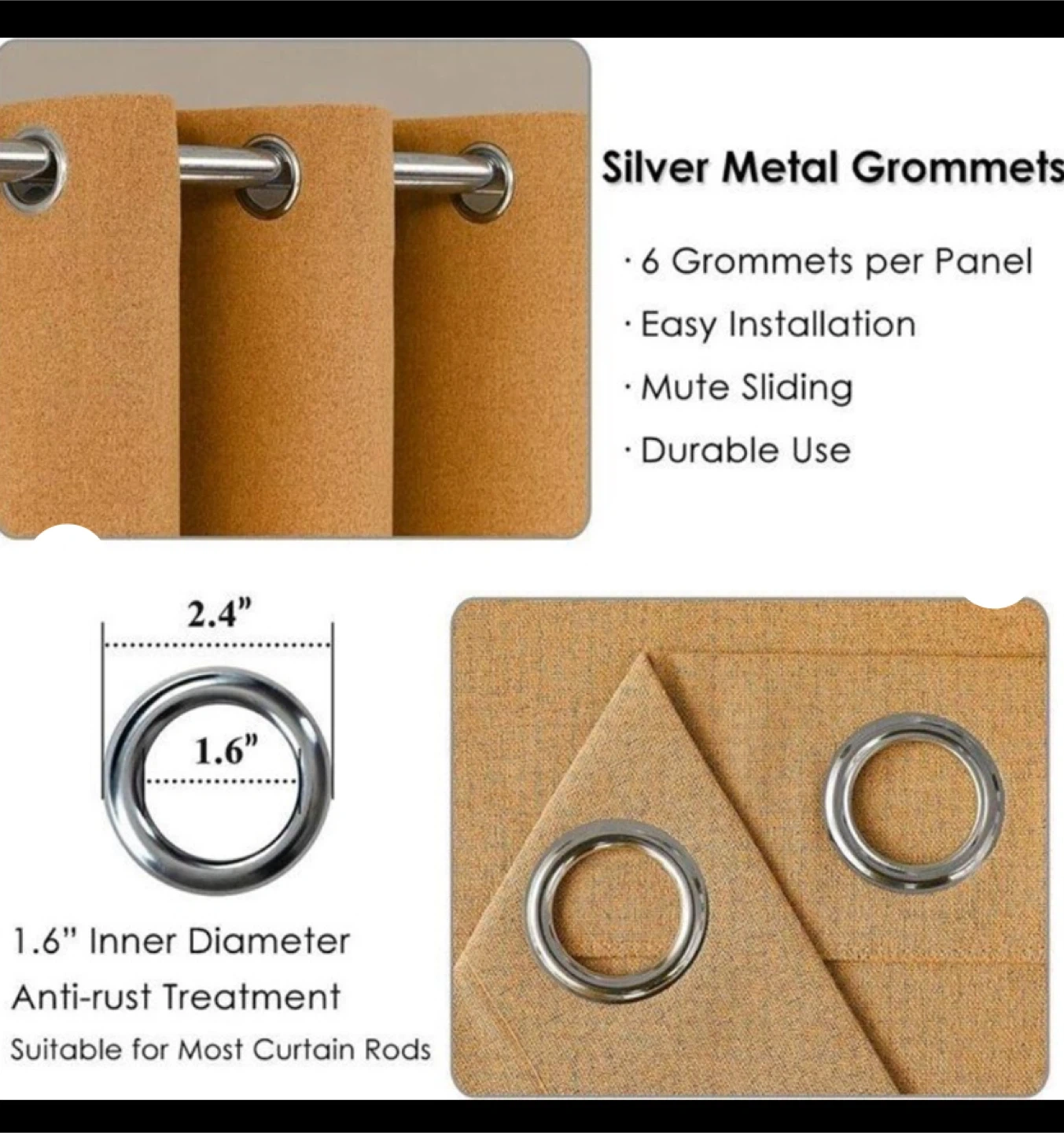 100Size 28"x 62". Melodieux 100% Blackout Curtains for Bedroom, Thermal Insulated Noise Reducing Linen Grommet Window Drapes for Living Room and Nursery, Golden Orange, 28 x 62 Inch Length, 2 Panels.