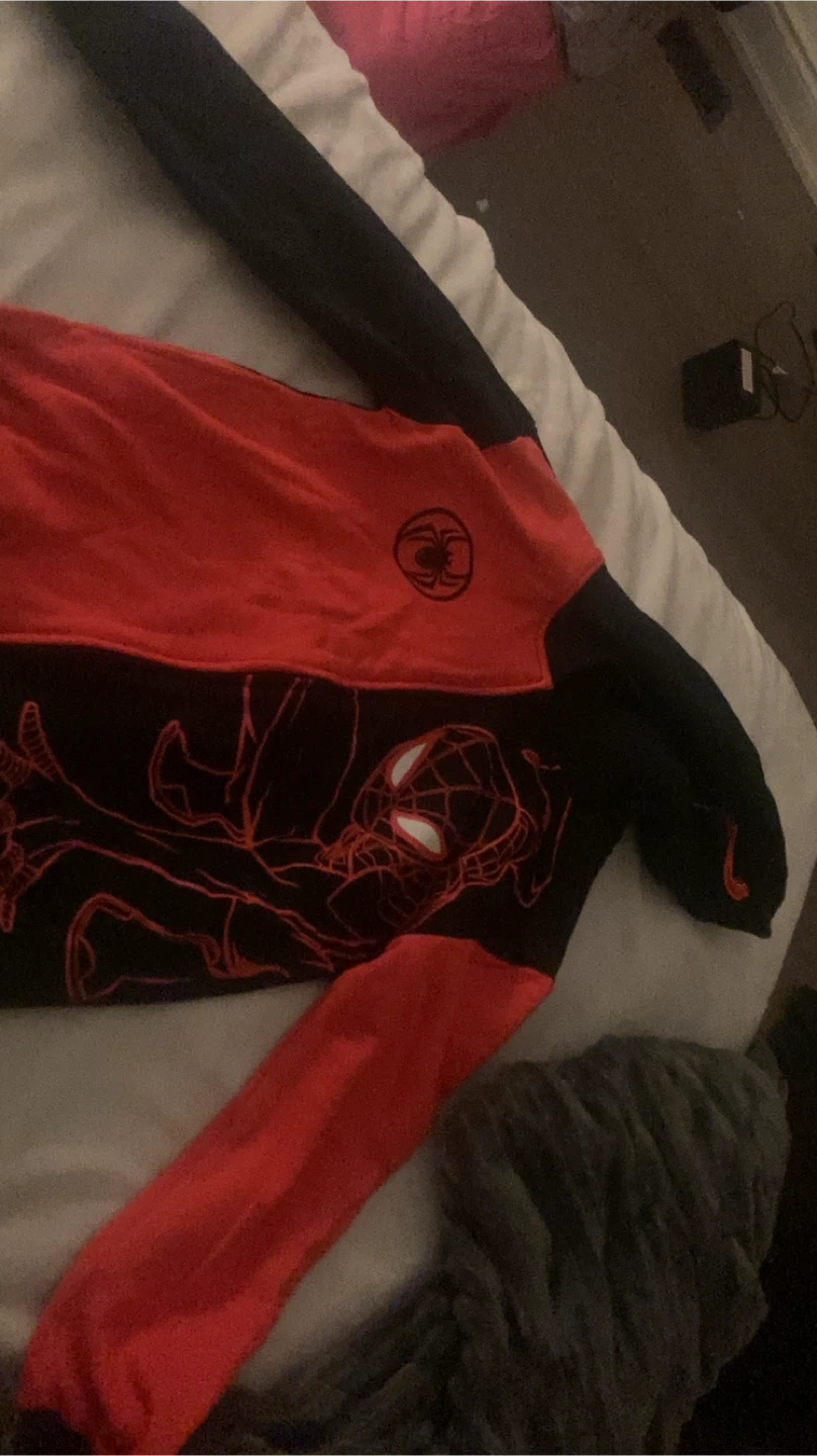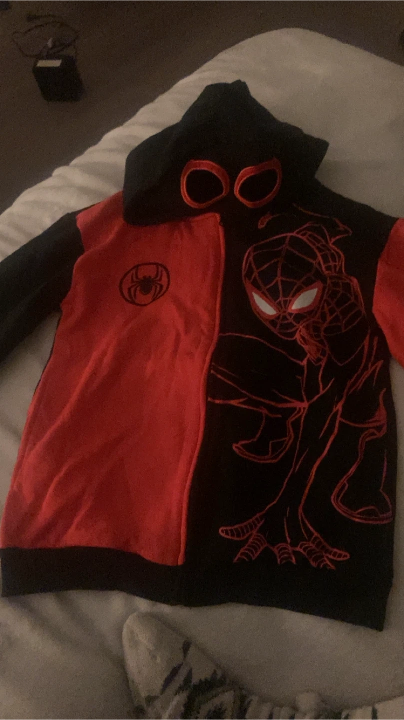 Selling a Spider-Man Miles Morales hoodie! It's red and black, featuring a cool design of Miles Morales. Never worn. Price is negotiable. Perfect for any Spider-Man fan to stay cozy