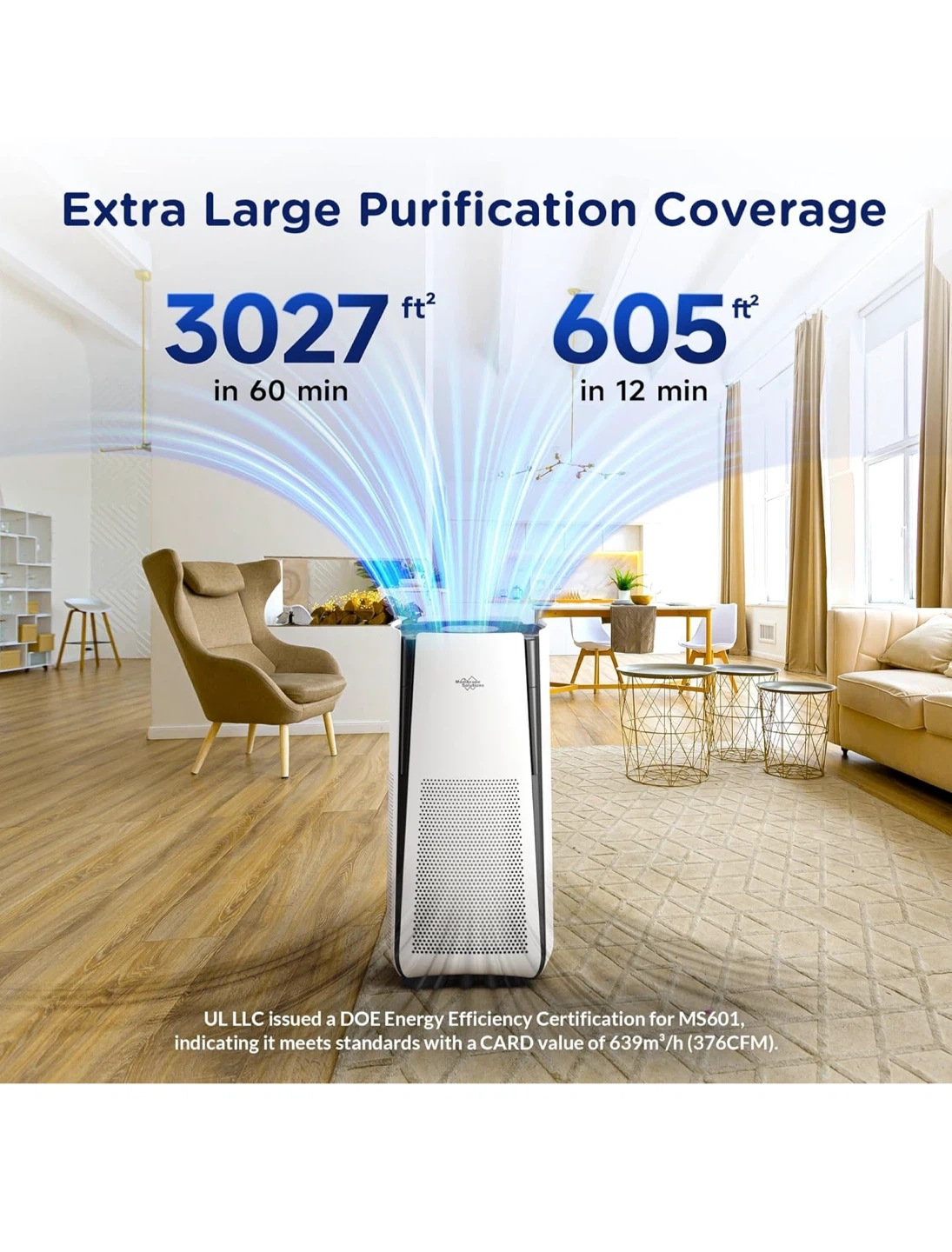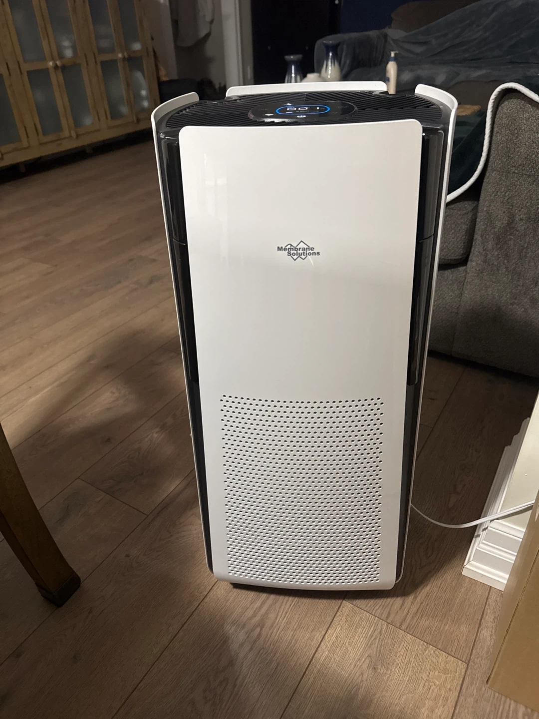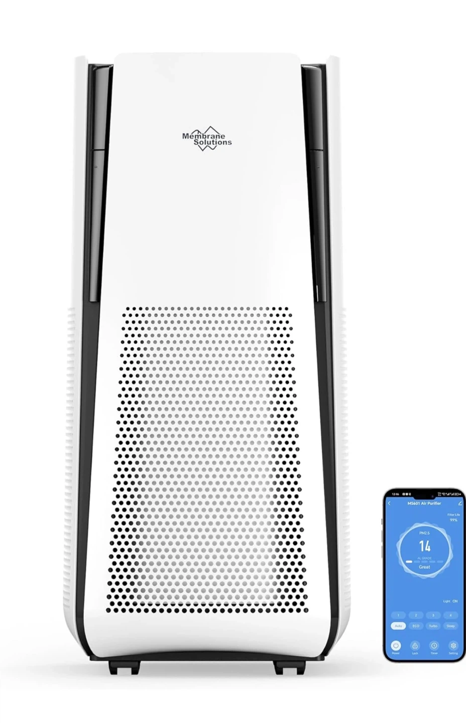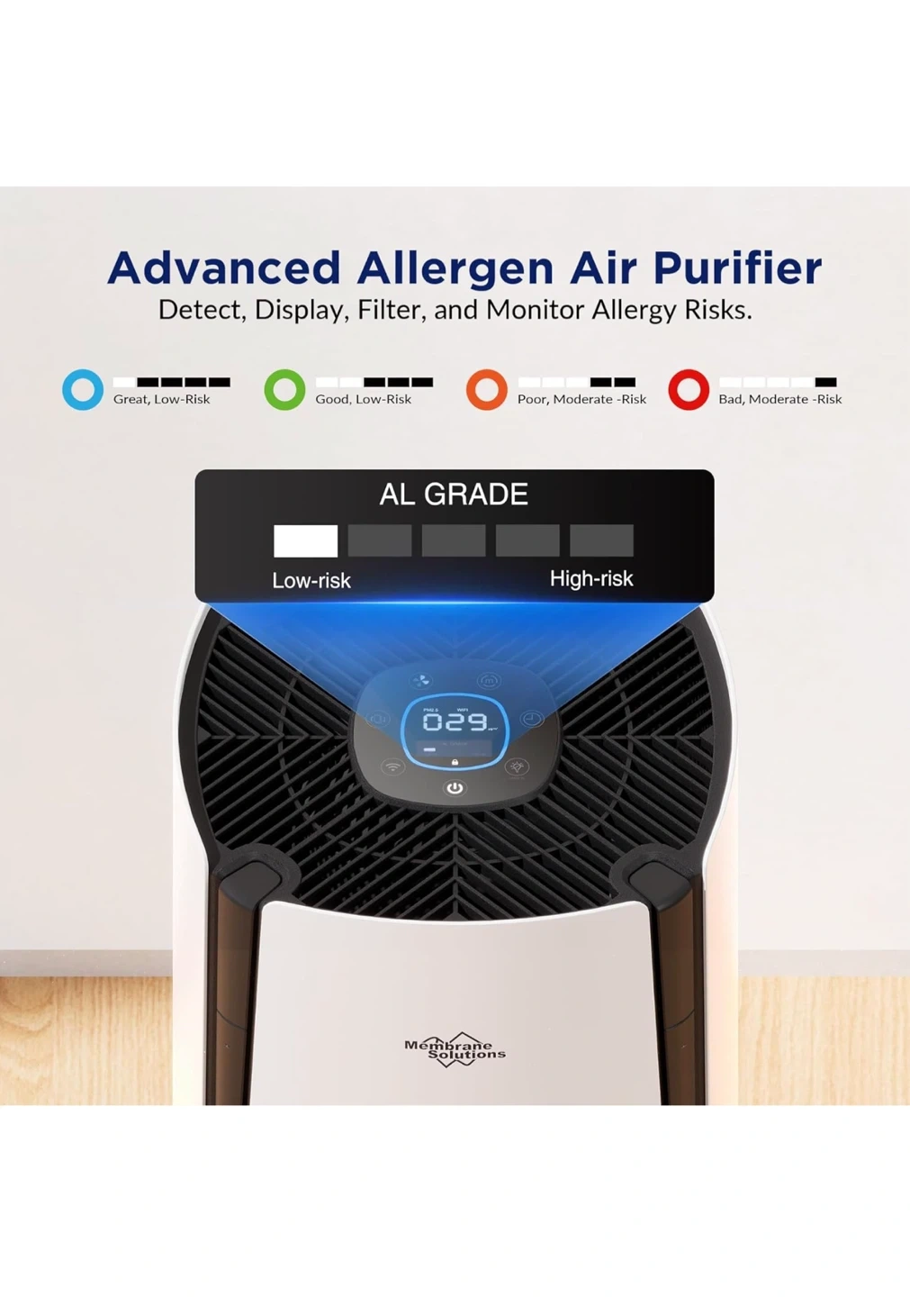 Keep your air clean with this Membrane Solutions MS601 Air Purifier! It's designed to detect, display, filter, and monitor allergy risks. This advanced allergen air purifier has extra large purification coverage. It can purify 3027 ft² in 60 minutes or 605 ft² in just 12 minutes