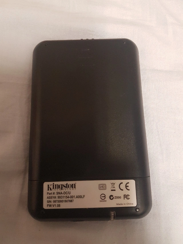 Kingston Technology brand, 120 GB capacity, SSDnow 300 V. Part #: SNA-DC/U ASSY #: 9931154-001.A00LF S/N: 08733931507687 FW: V1.08. Comes with dual, data transfer USB cord. Assembled in Taiwan, made in China. Great working condition. Available for pickup near Cambie Road & No. 5 Road in Richmond.