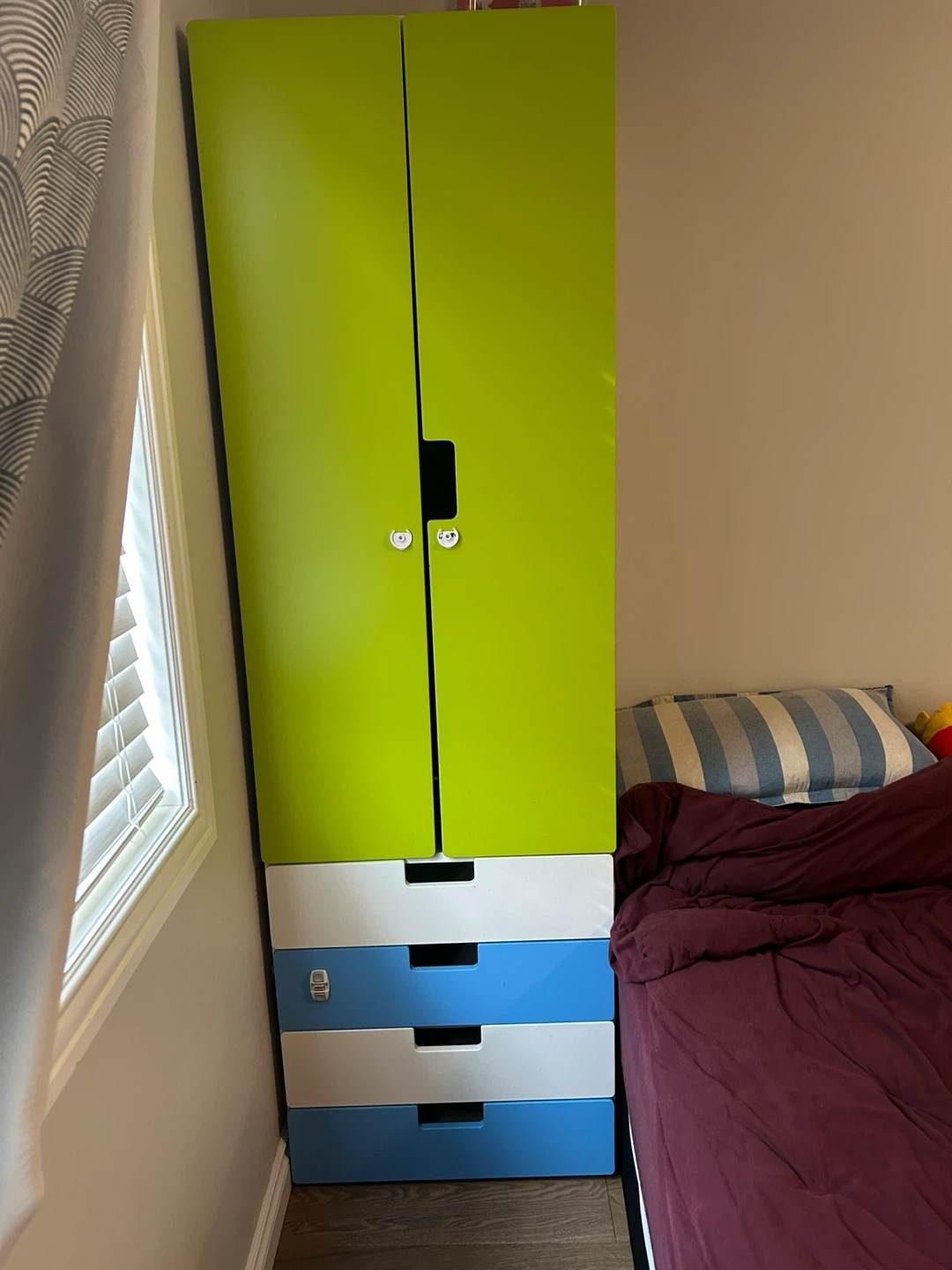 Green and Blue Wardrobe with Drawers