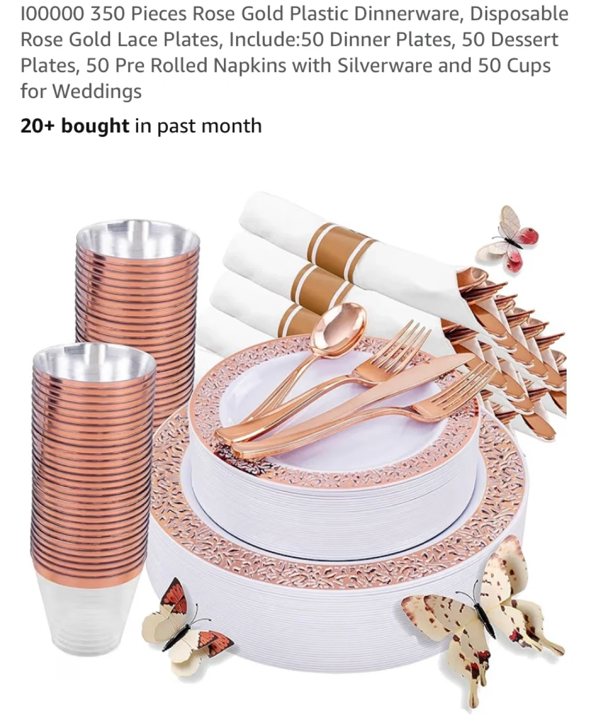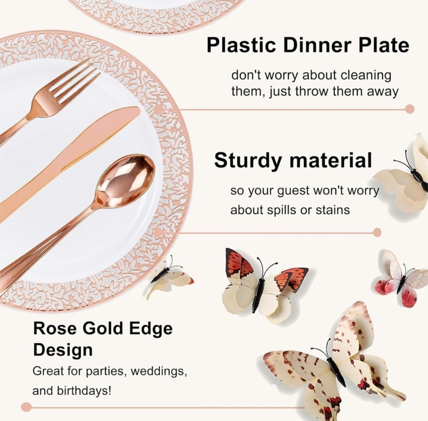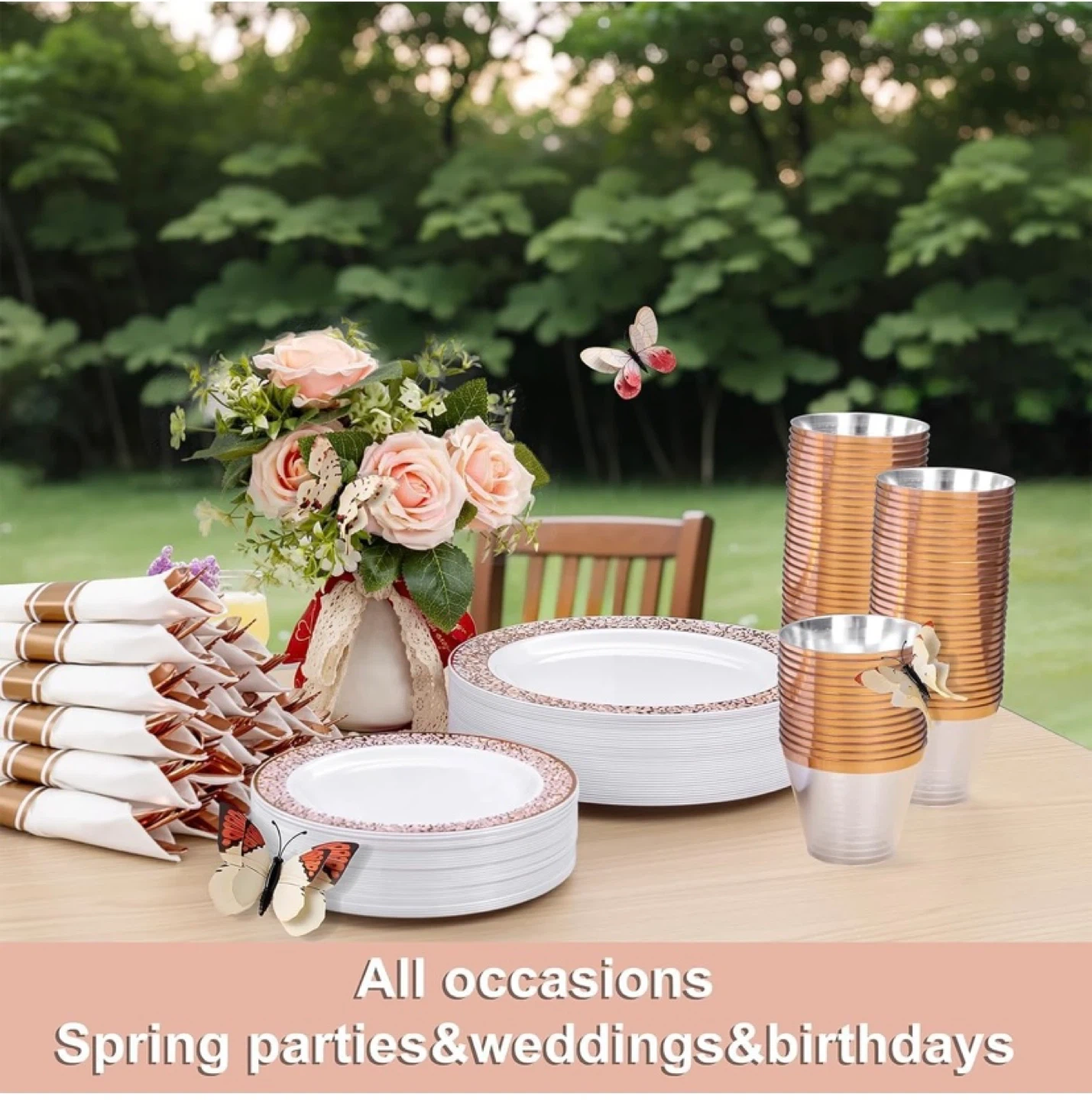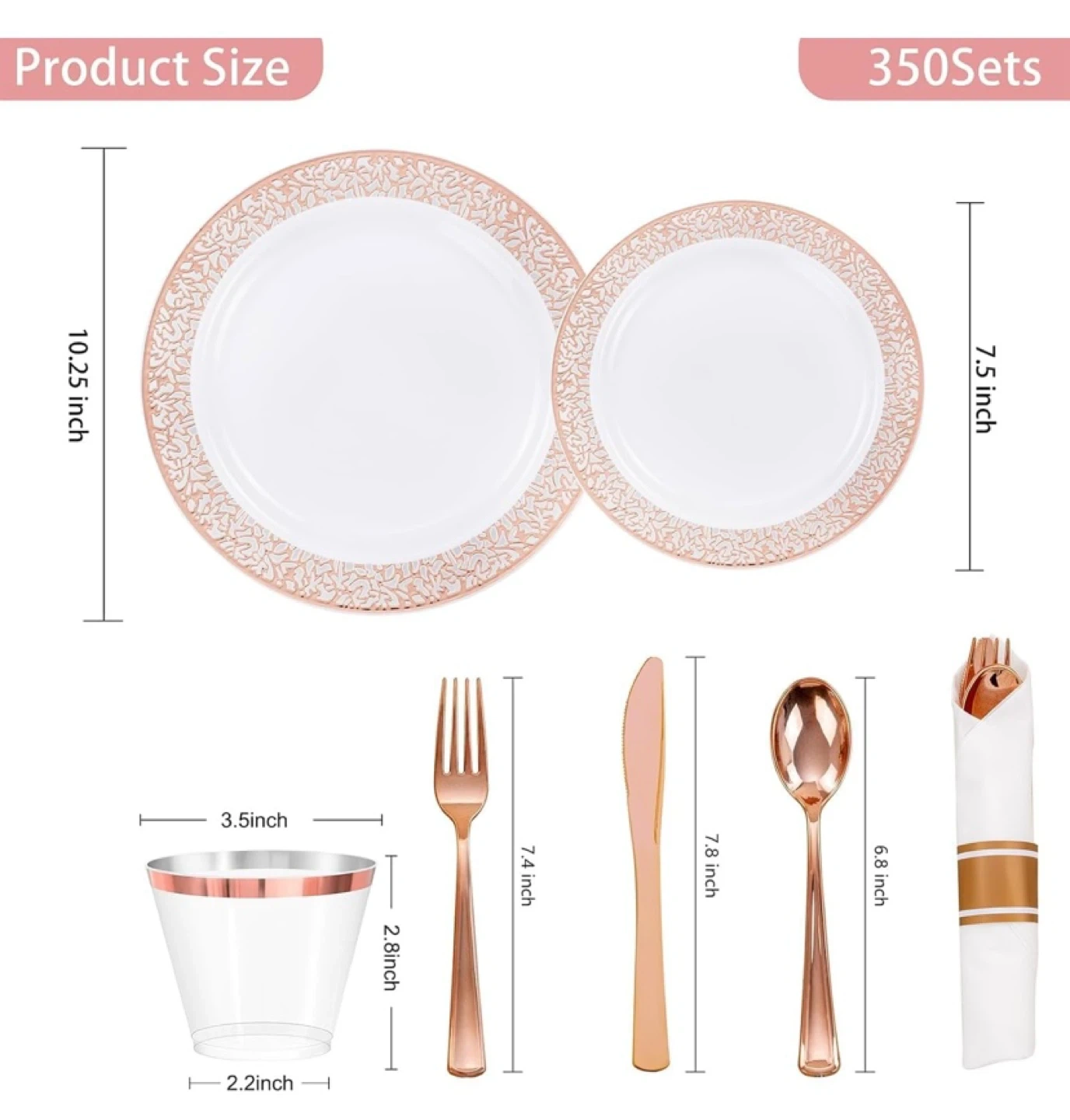 New 350 Pieces Rose Gold Disposable Plastic Dinnerware