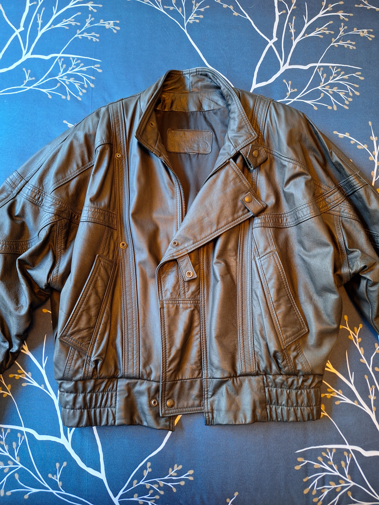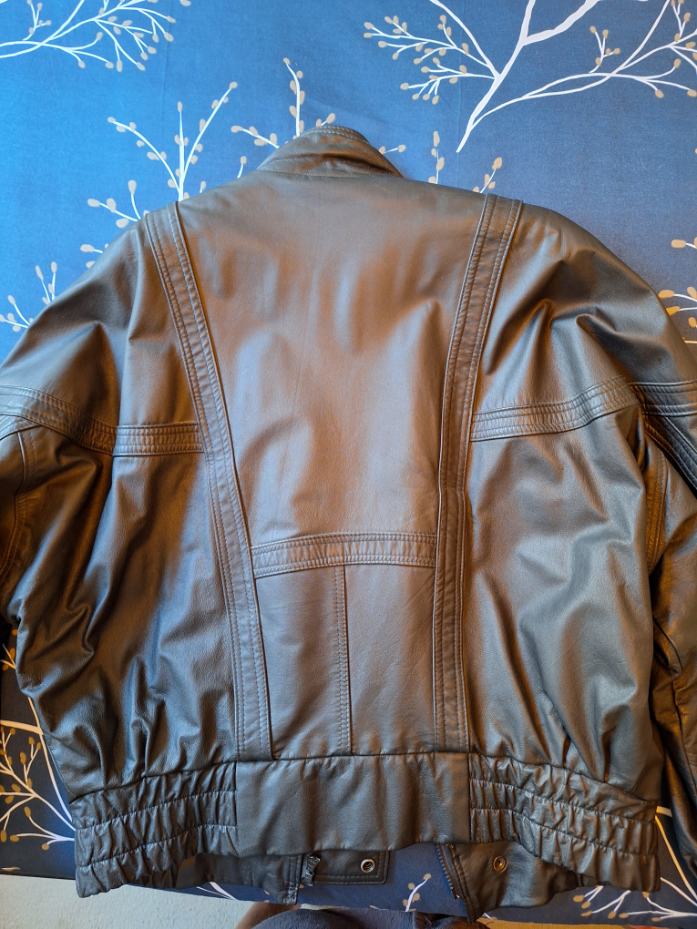 12Stylish men's black leather jacket from the 80's. Worn only a few times. Heavy leather. Purchased from the old Leather Ranch store on Granville Street.