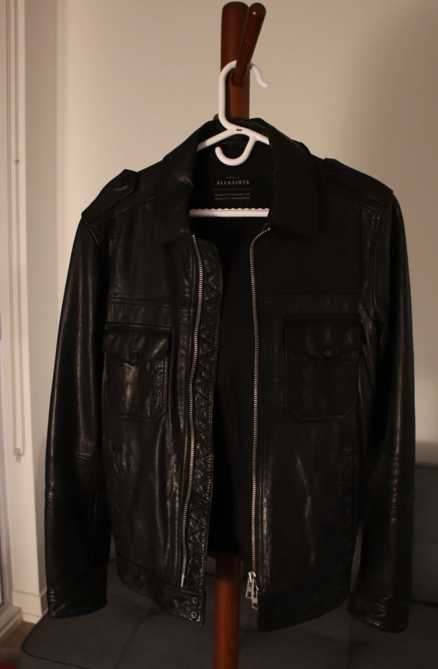 1000+Selling a gently used AllSaints black leather jacket! It's in great condition and has a classic, stylish look. Perfect for adding a bit of edge to your wardrobe. The leather is soft and supple, making it super comfortable to wear. It's a timeless piece! It’s well used but soft, comfortable leather that is well broken in.
