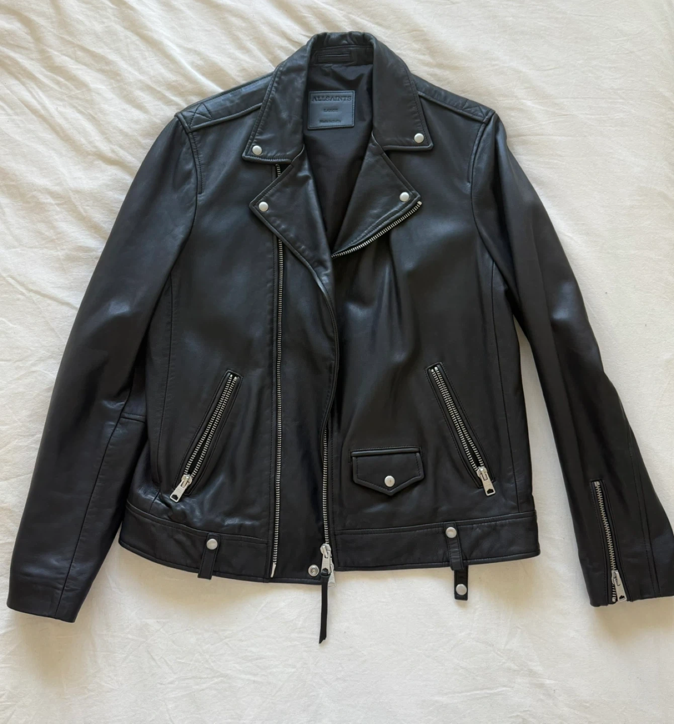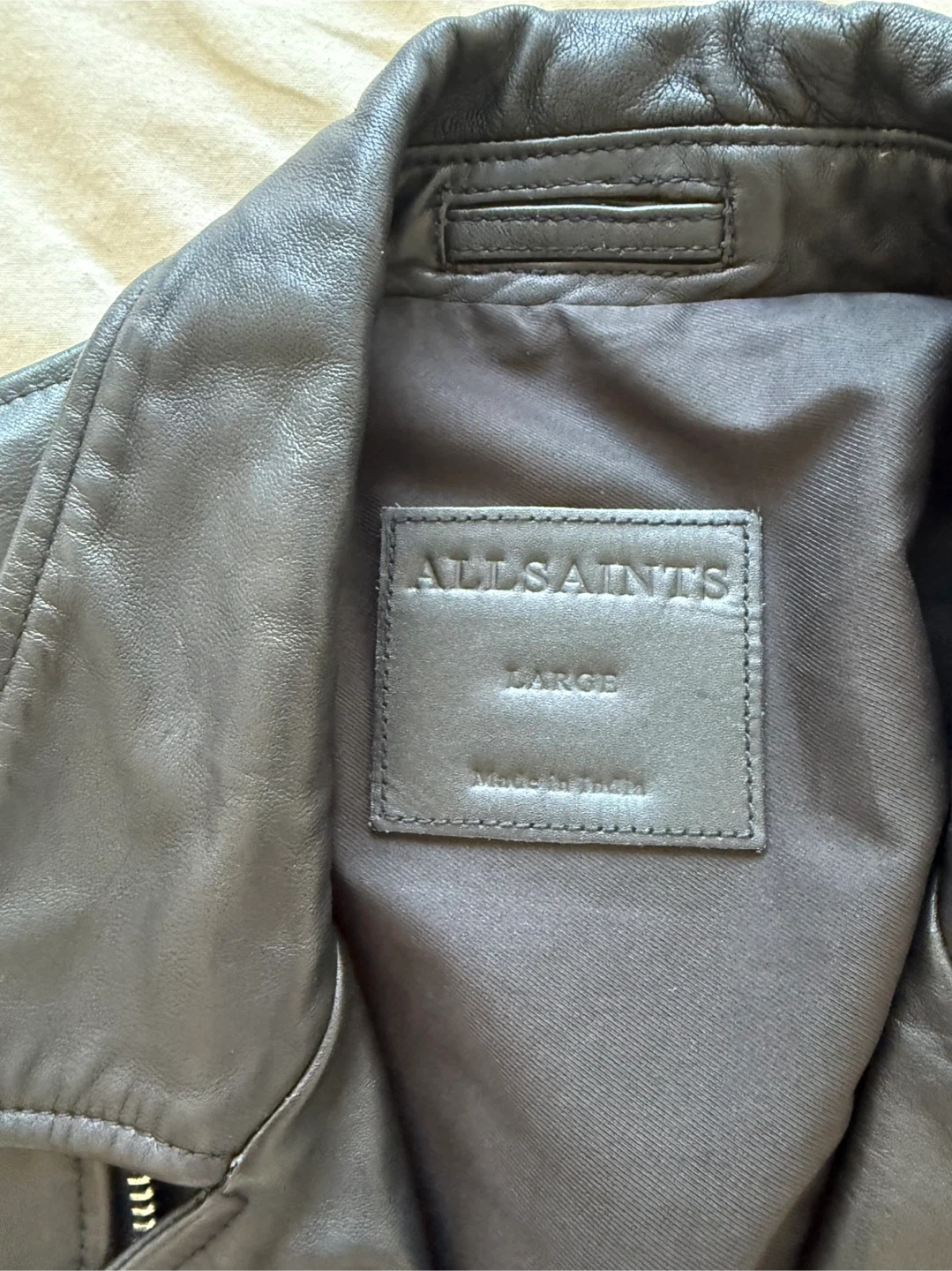 76Selling an AllSaints men’s Milo Biker leather jacket in size large. It's in near perfect condition and has only been worn twice. The jacket is made of high-quality leather and features a classic design. Perfect for adding a stylish touch to any outfit. Currently retails for $839CAD.