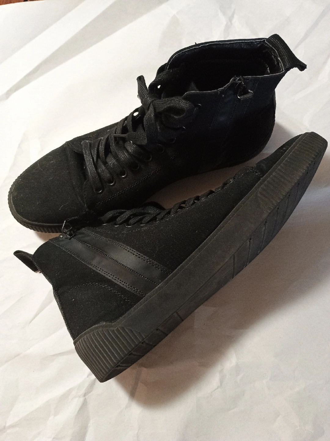 21Selling a pair of B2 black high-top laced and sidezippers sneakers. They're in good condition and size 9. Great for everyday wear! cash only