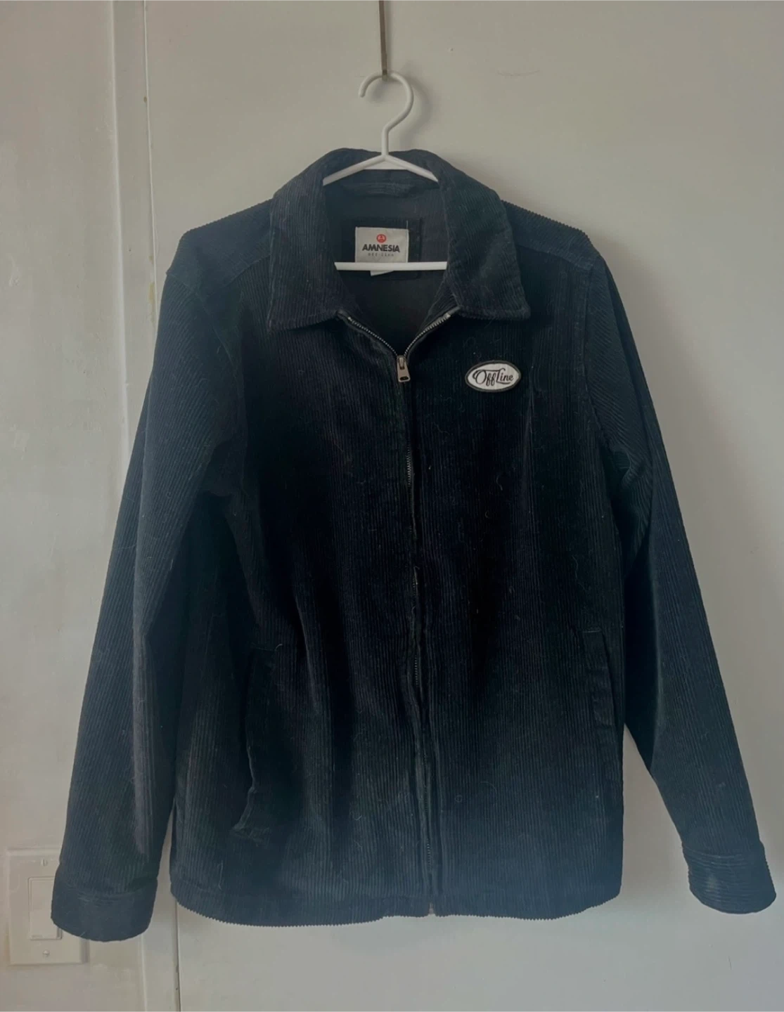 Selling an Amnesia Corduroy jacket in black. It's in great condition and perfect for layering. The jacket features a full zip closure and a classic design that can be dressed up or down. Size small in men’s sizes. Pickup downtown and cash only!