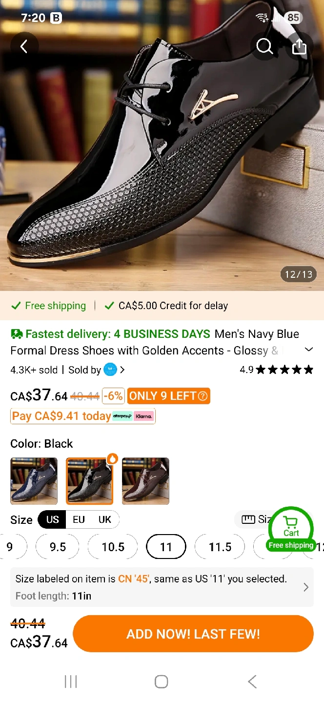 Pair of men's black faux leather formal shoes. Lace-up closure. Gold-tone accents. Slight wear. Good condition. Enjoy the sleek look of this pair of black leather dress shoes and get noticed today! See last picture for price comparison from Temu! Delivery for an extra $5. Or Curbside pickup M-Sat 5pm-10pm!