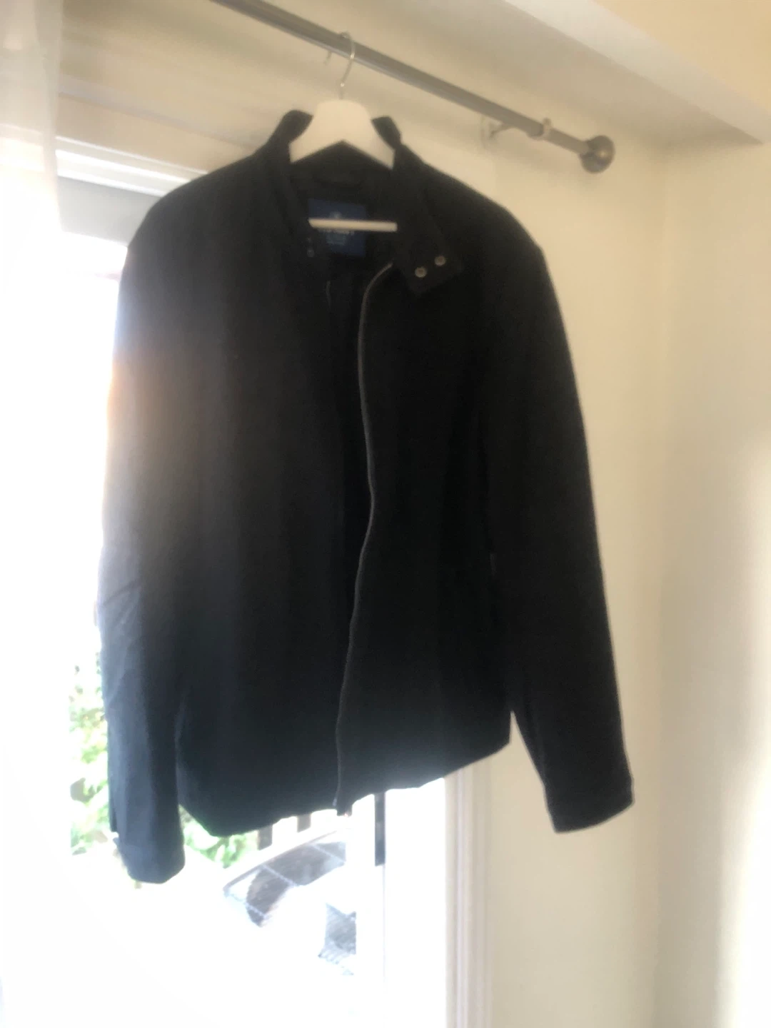 Selling a men's black jacket. It's in good condition and perfect for layering during the cooler months. A versatile piece for any wardrobe!