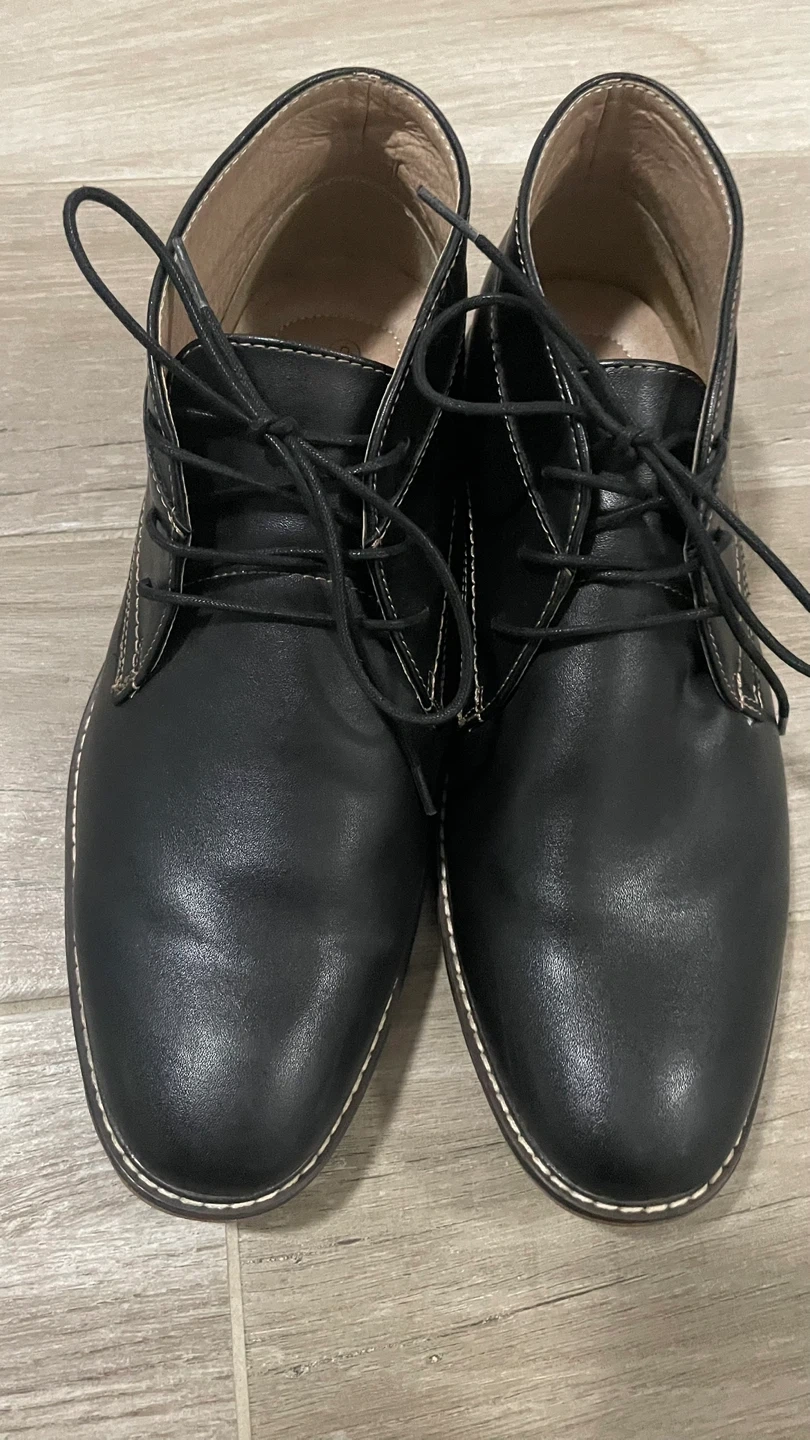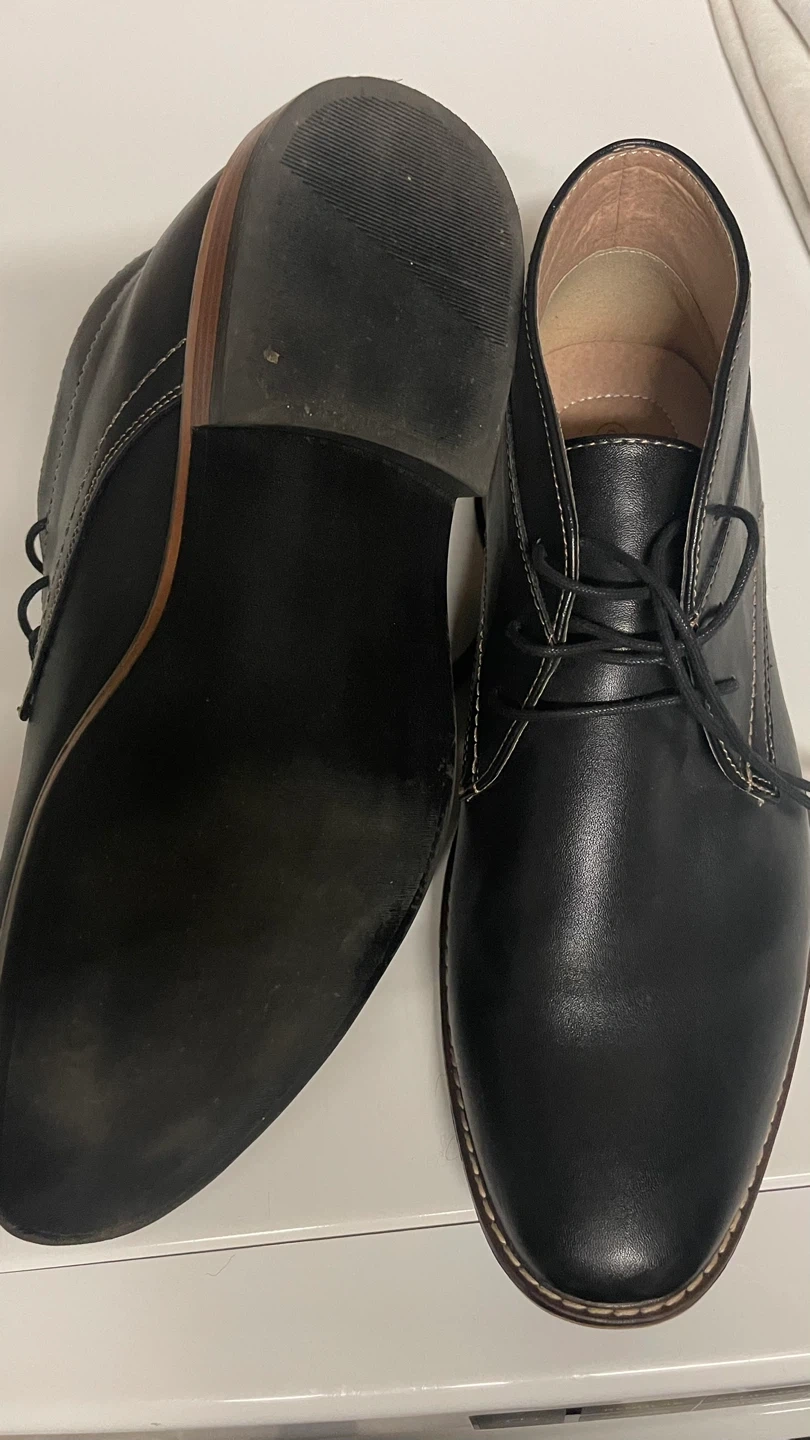 20Selling a pair of men's chukka boots in black leather. They appear to be in good condition and are a size 9. Perfect for dressing up or down!