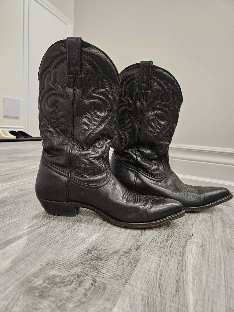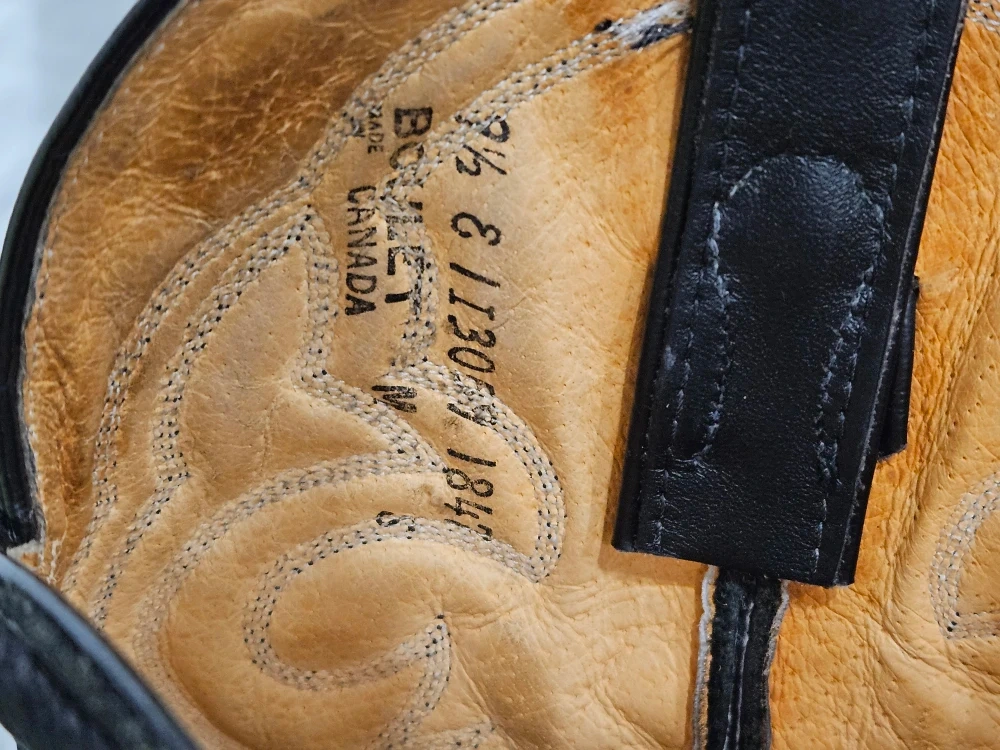 33Selling a pair of men's Boulet cowboy boots in black leather. They are a size 9.5 and made in Canada!