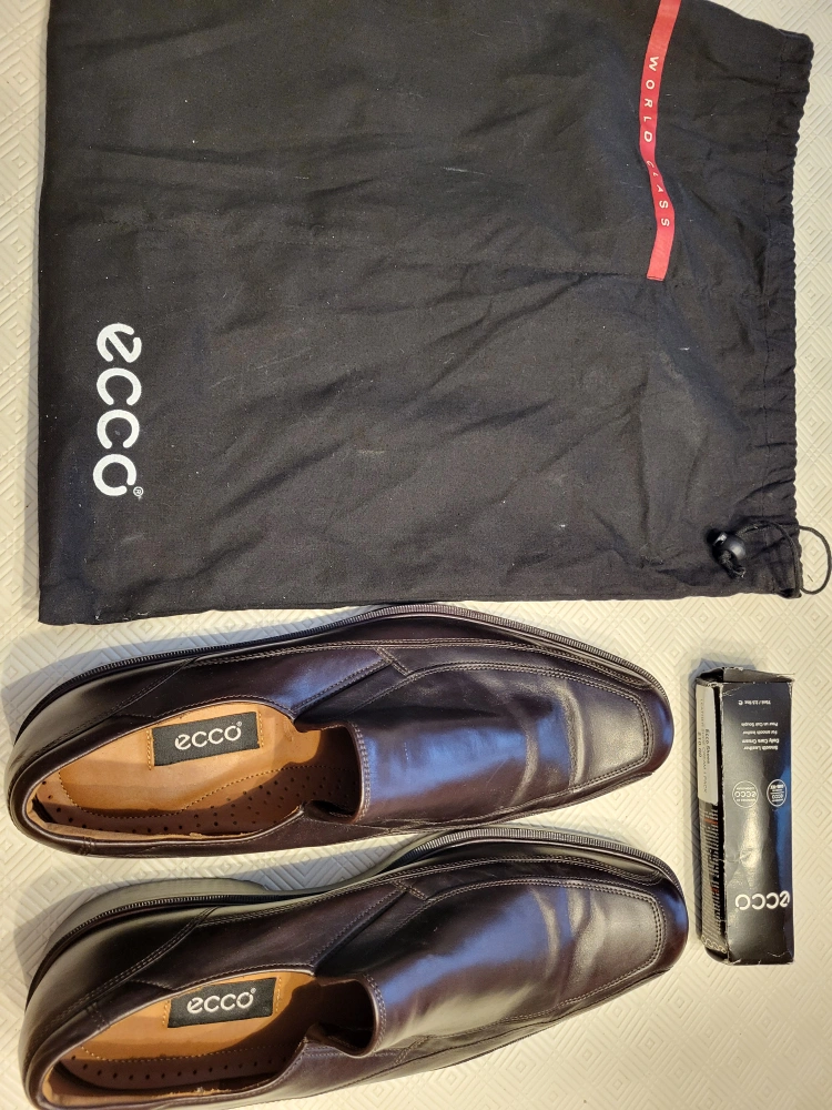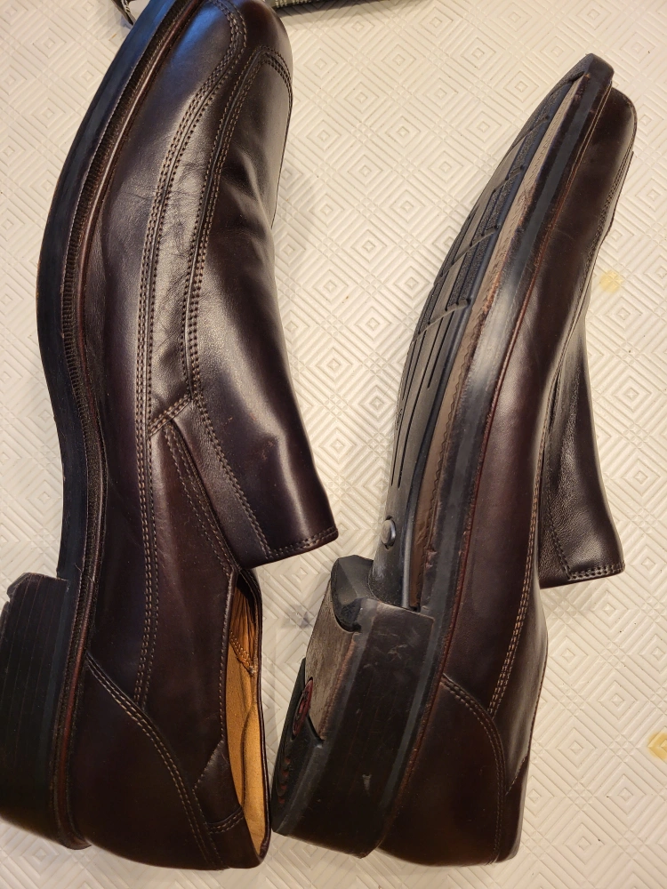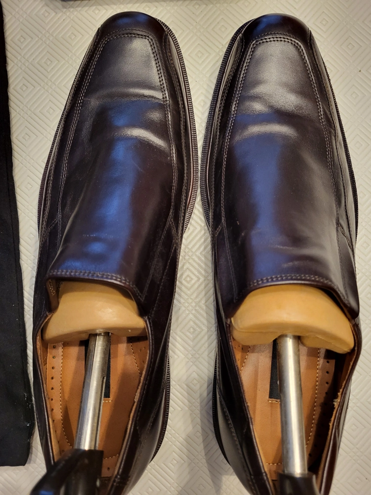 15Men's leather slip-on shoes size 13. Comes with bag and coffee brown leather shoes cream. They've only been worn a couple times and are in great condition with little to no wear.