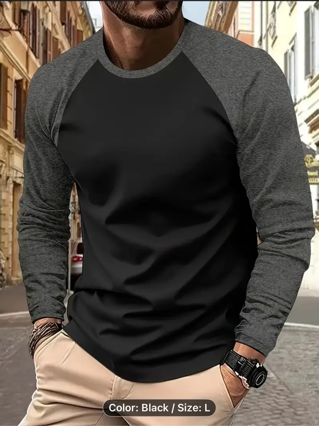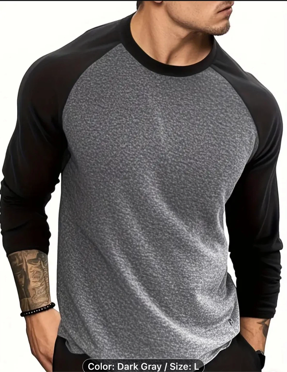63Men's Fashion Sports Long Sleeve T-Shirt - Casual Dual-Color Design, 100% Polyester, Crew Neck, Stretchy - Perfect for Everyday and Athletic Wear Breathable Long Sleeve Top Large size $15 each