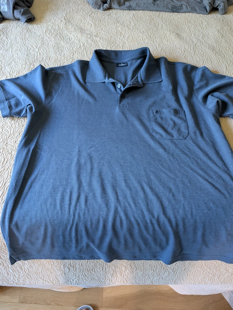 Selling a couple of men's shirts! One is a Fioboc polo shirt in a nice grey colour, and the other is a Guess t-shirt with a plaid pattern. Both are in good condition and ready for a new home