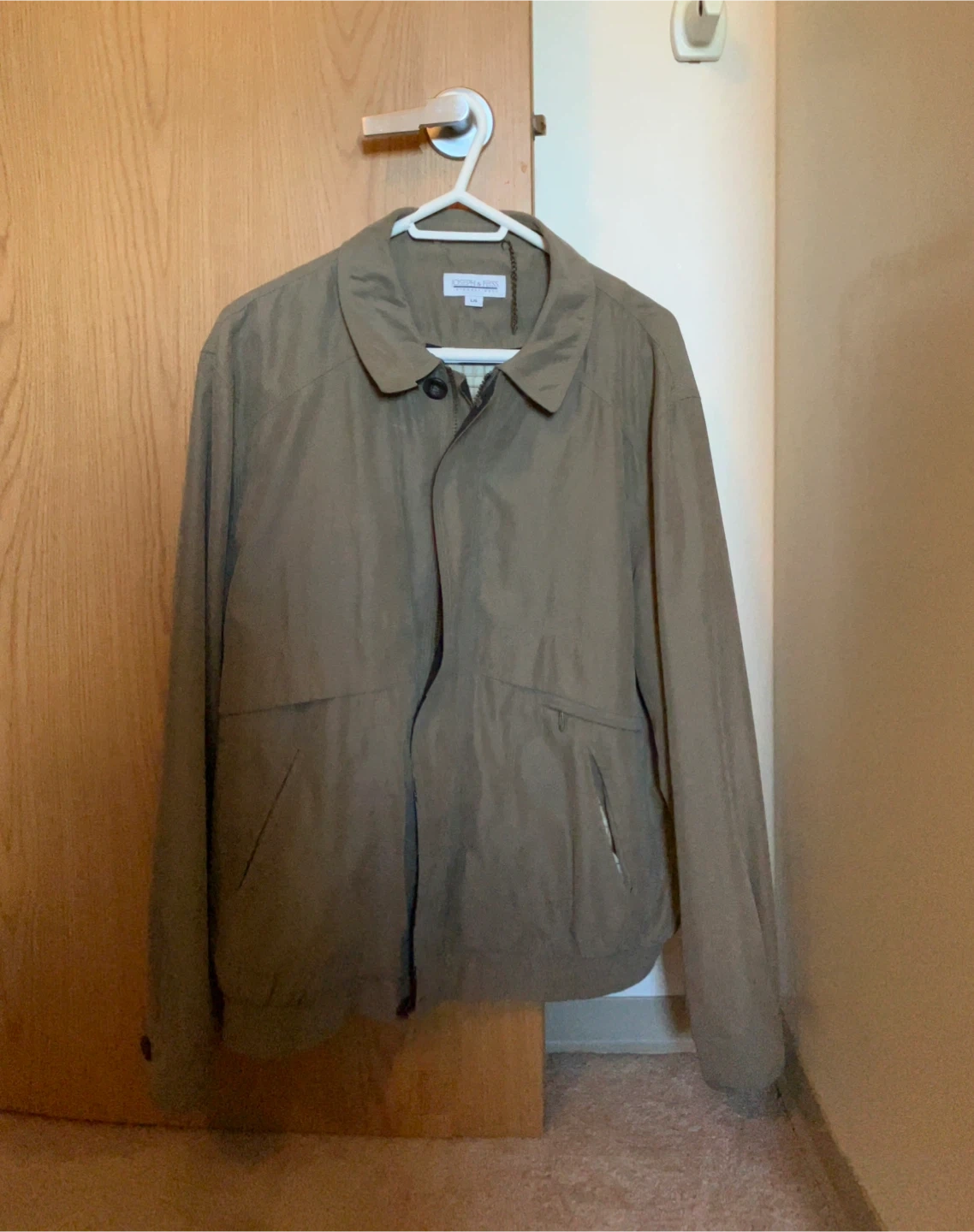 103Gently used light brown polyester and nylon, soft to touch, jacket, reduced price to sell, is now $36.00.