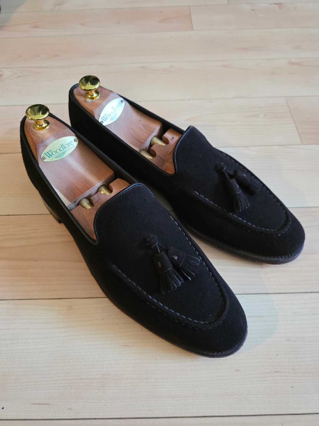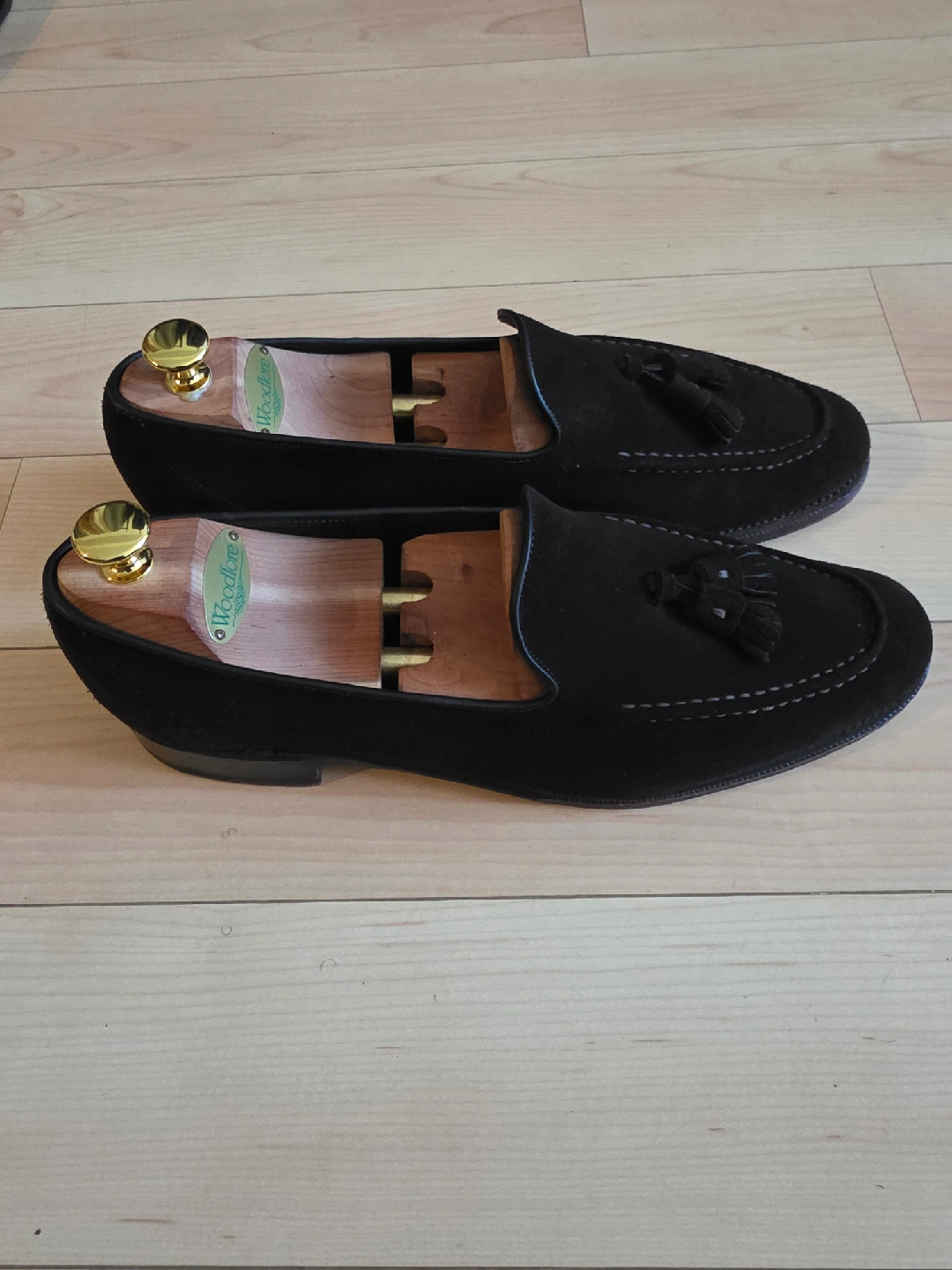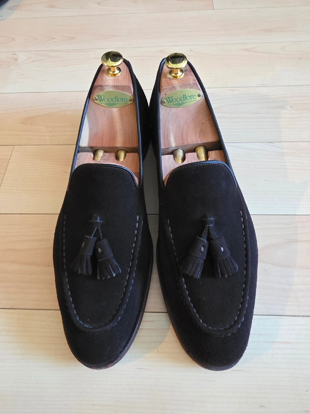 Size 10 US Meermin Suede Tassel Loafers. Unlined leather for flexibility and comfort, goodyear welted, blind stitch outsole. Shoe trees not included.