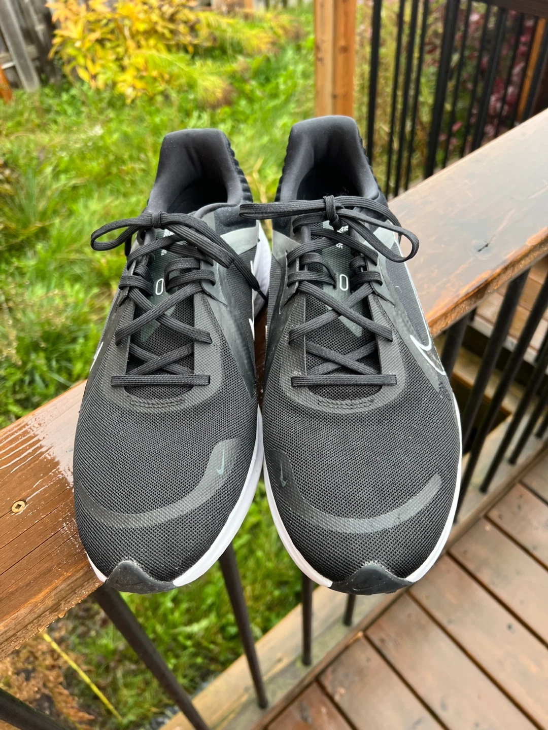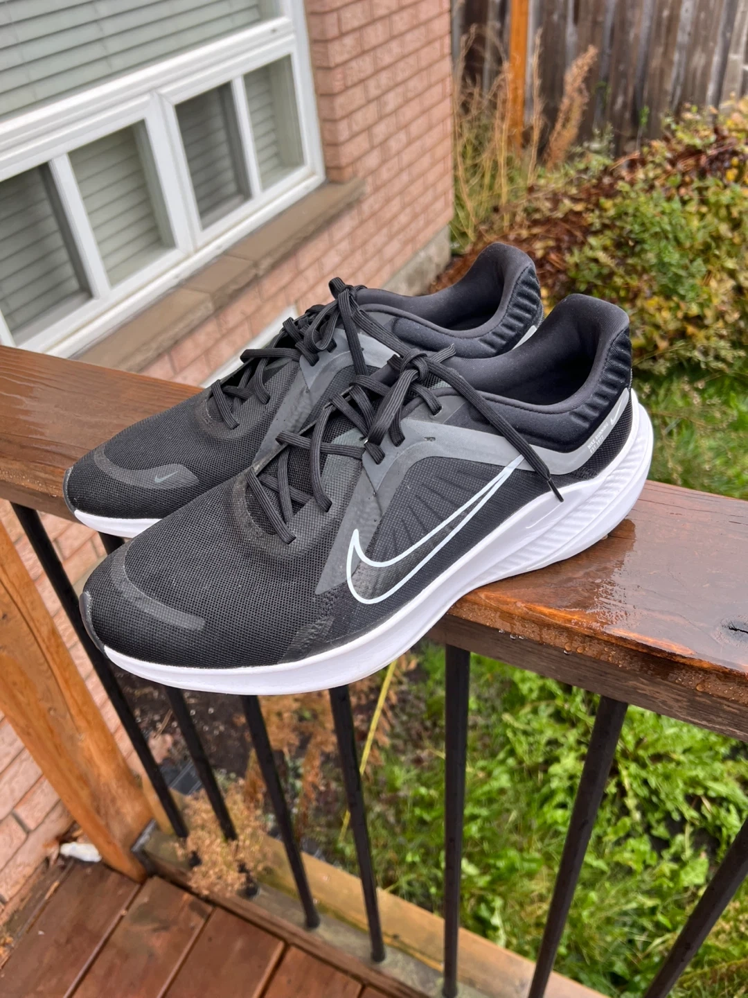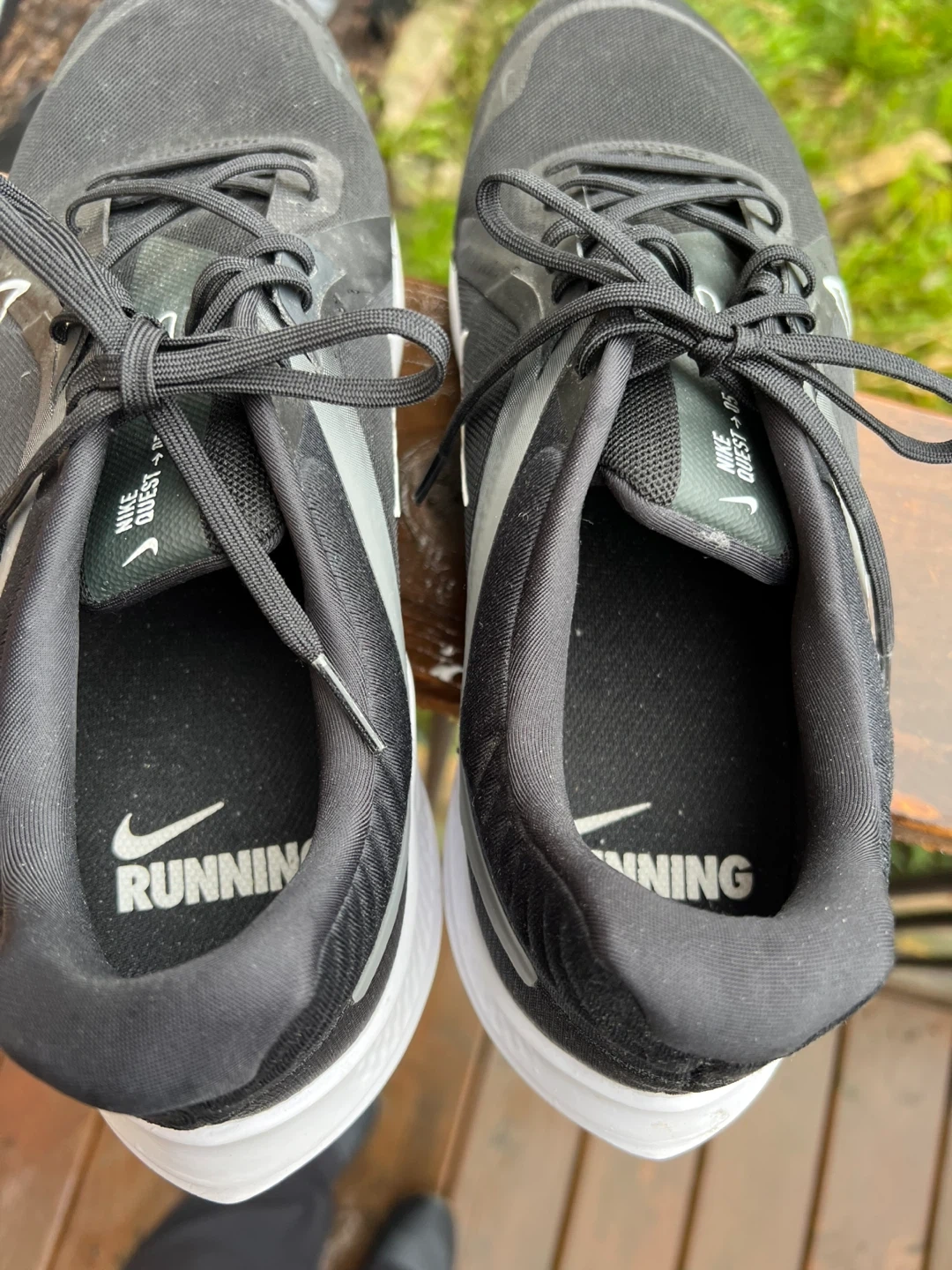 86Selling a pair of Nike Quest running shoes in size 13. They're in good condition and ready for your next run! The shoes are black with a white Nike swoosh. The soles have some wear, but overall they're still in great shape.