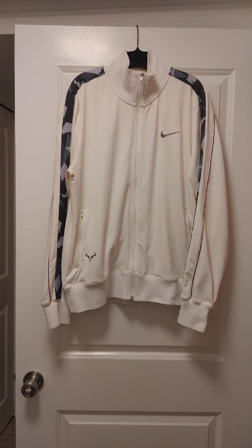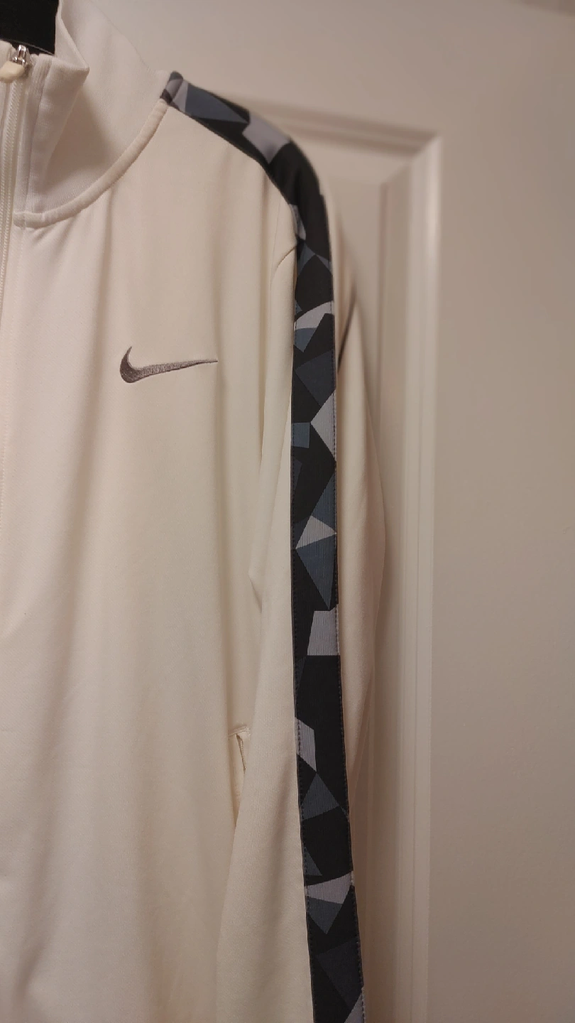 68Unique geometric pattern along the sleeves and the Nike swoosh logo on the chest. A stylish and comfortable jacket for workouts or casual wear! size Large