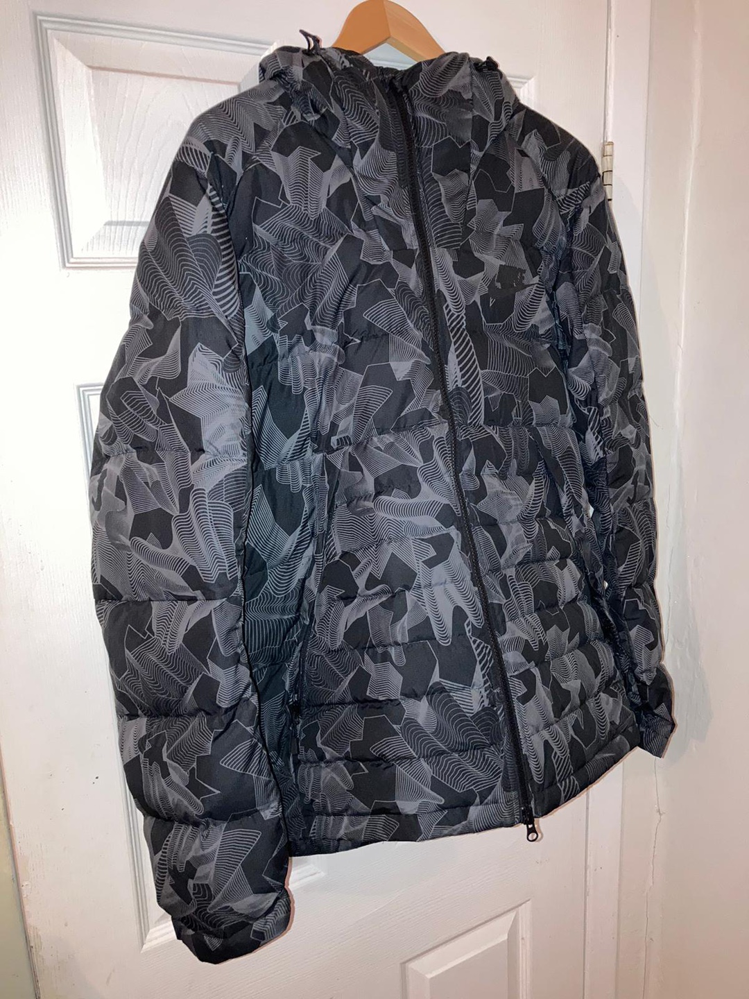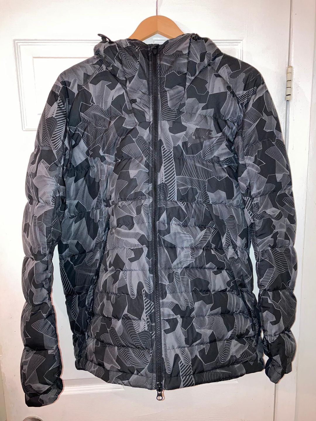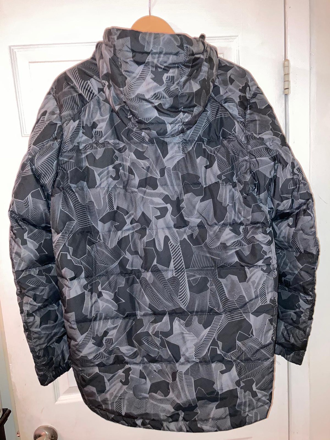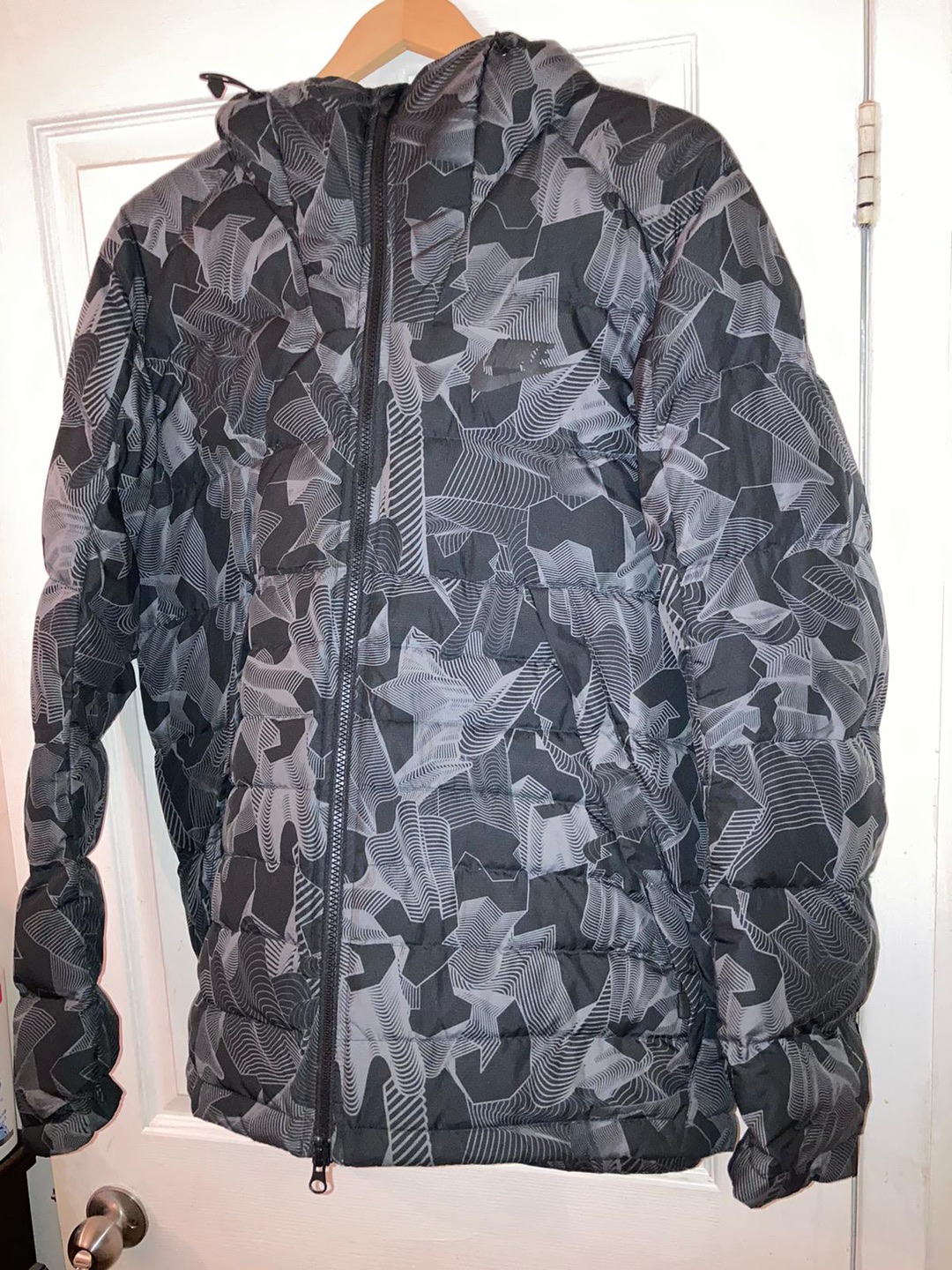 10Large multi patterned padded down -fill hooded NIKE winter jacket for sale $60. In 10/10 conditions.