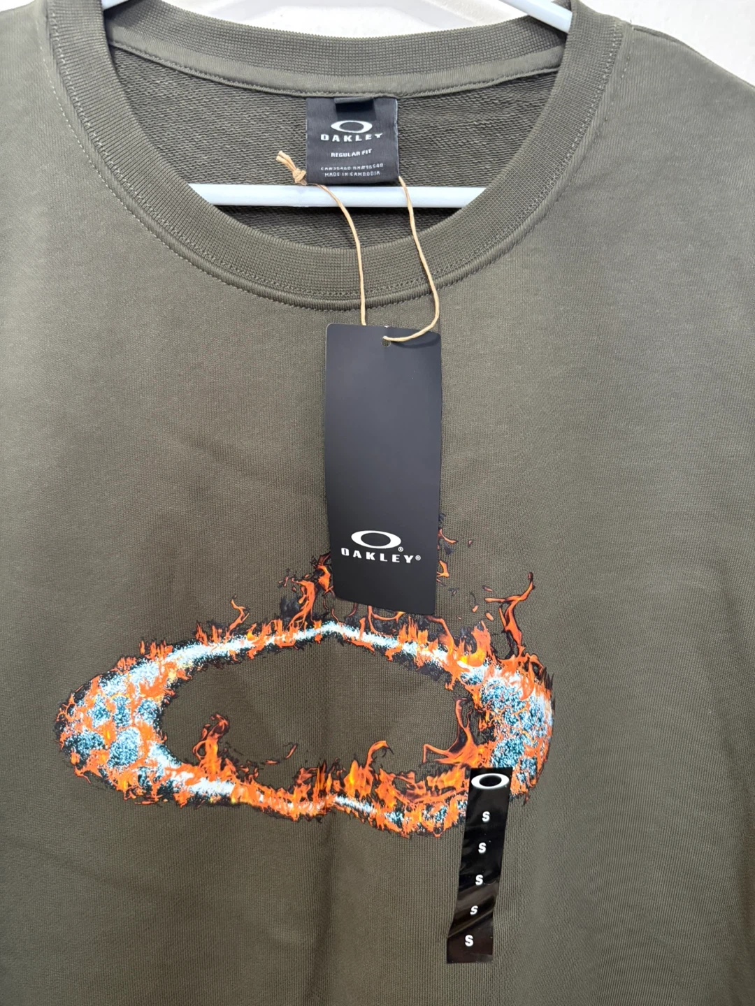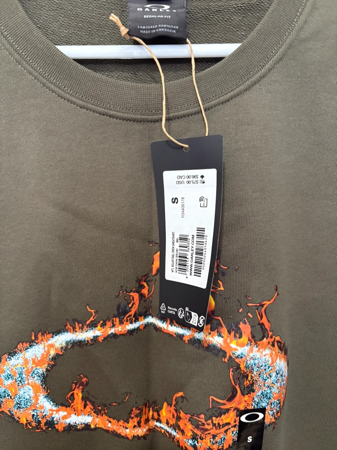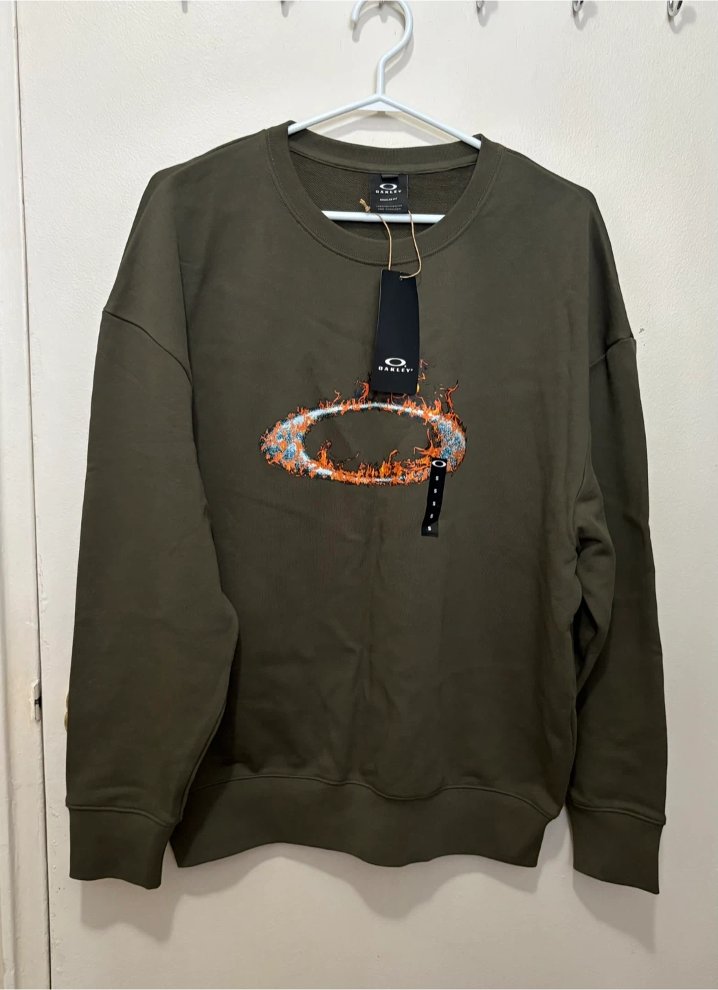 Selling a brand new Oakley crewneck sweatshirt in size small! It's a regular fit and features a cool design. The colour is a nice olive green. The tag shows the original price was $90 CAD. Never worn! New with Tags.