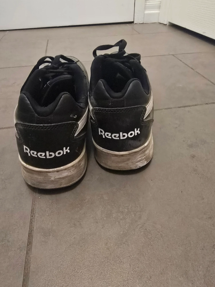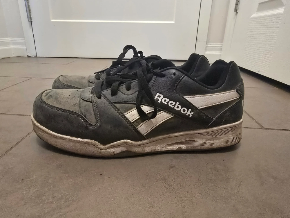 Pre-owned Reebok sneakers. Black leather upper, white accents. wear for couple of months. Great for casual wear. very Easy to clean by using just the wet wipes. ALSO too light weighted.