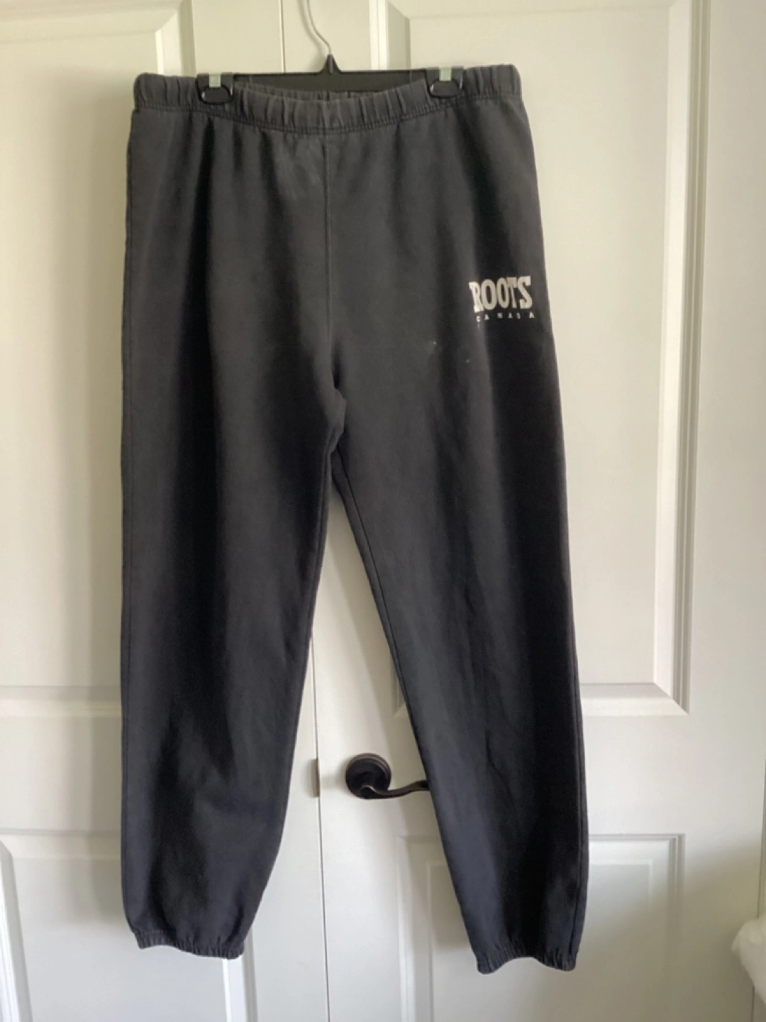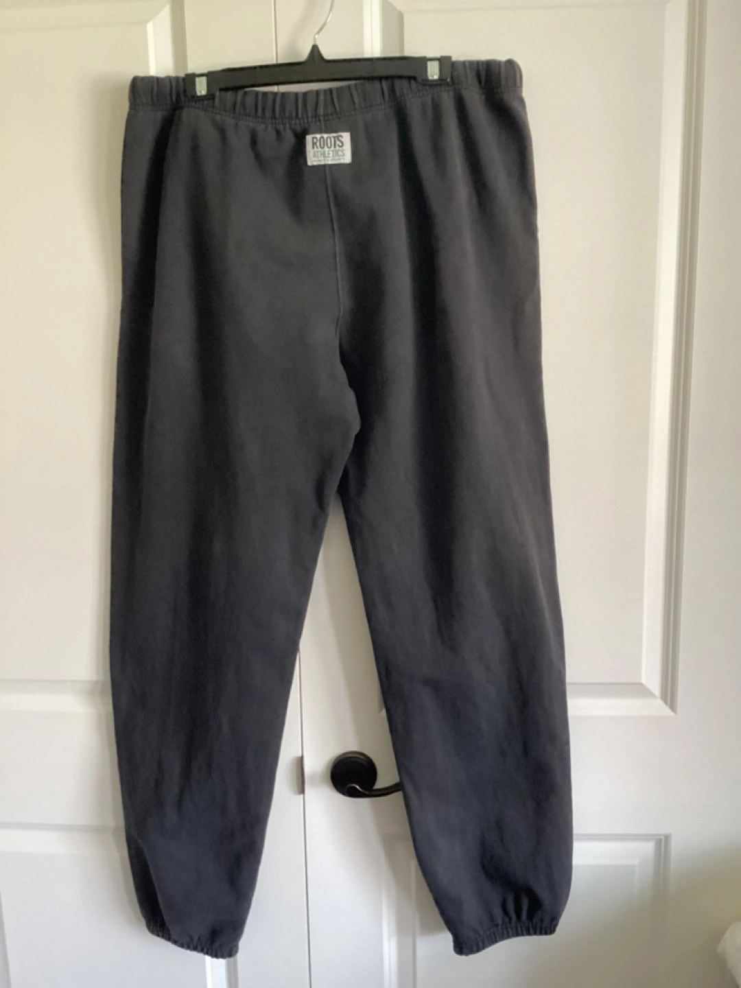 Mens Roots Sweatpants, fair condition, they are faded but there are no holes, just some marks - see pics, waist elastic is worn out but the drawstring is very long, bottom leg elastic is also worn, $5. Waist 40” Hips 51” Inseam 33 1/2”