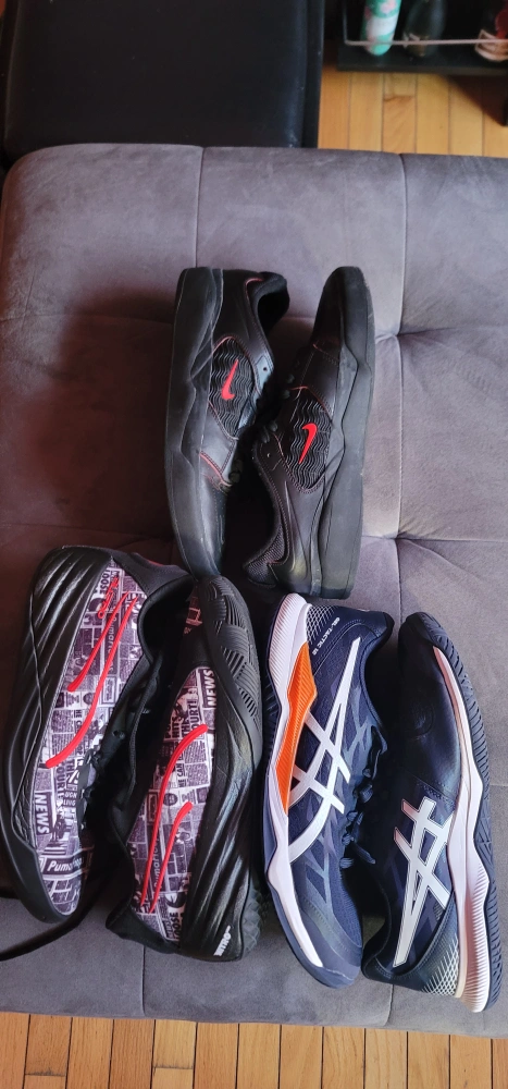 15Selling a variety of men's sneakers in great condition. Includes a pair of Nike SB Ishods, Puma All Pro Nitros, and Asics Gel-tactic 12s. Selling invidually for 55$, but can do all 3 for 145$ All were only worn twice. Size 10.5 mens The Asics are great shoes for volleyball, The Nikes are good for skateboarding, and the Pumas are great for basketball.