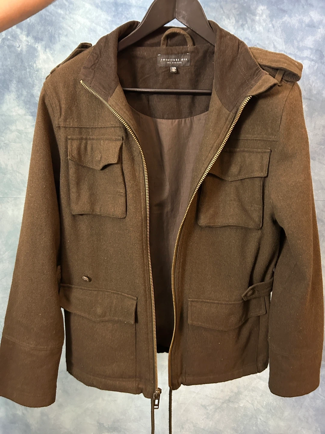 477Selling a Twentyone Men Los Angeles men's jacket. It's a wool blend and size medium. Great for fall and early winter weather!
