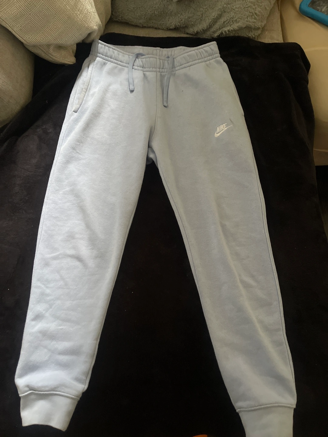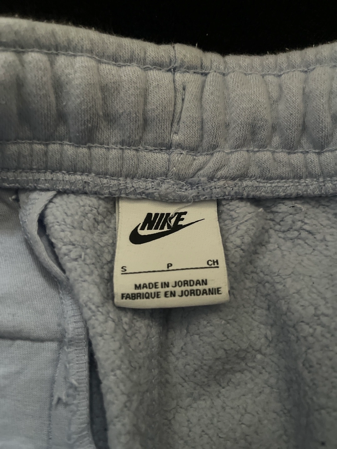 65Light blue Nike joggers. Size small. Elastic waistband with drawstring. Side pockets. Soft fabric. Made in Jordan.