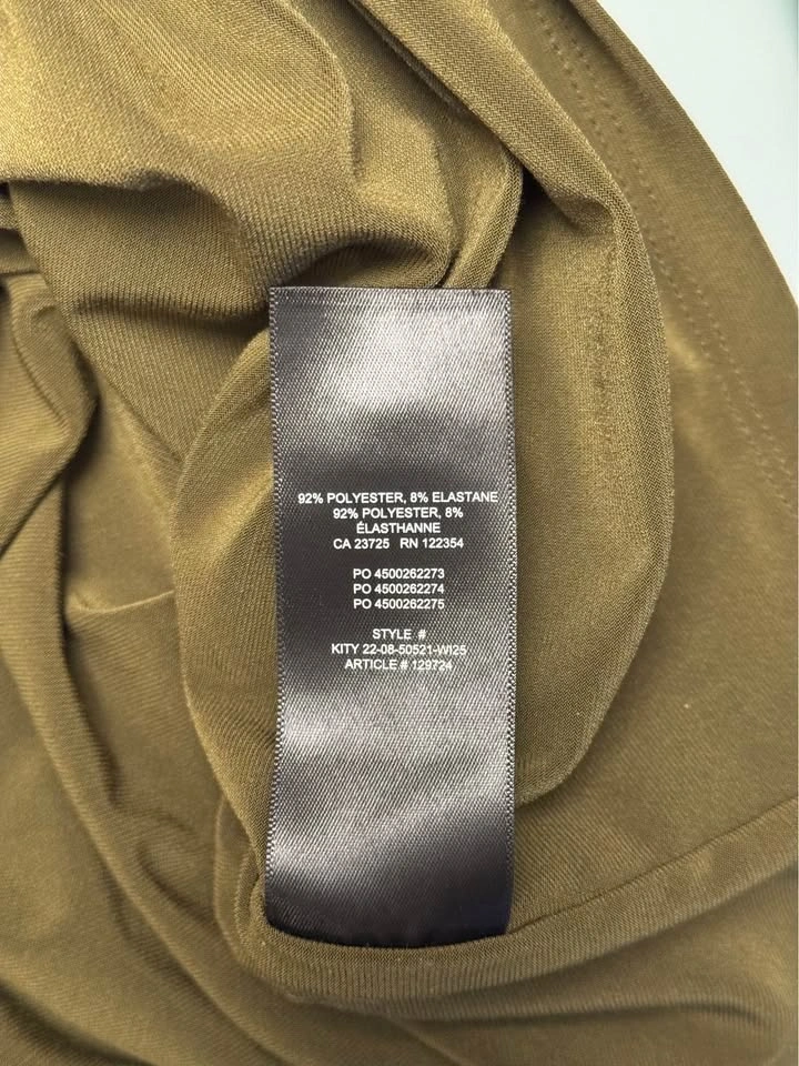 Sleek olive green long-sleeve dress with a scoop neckline. Made with Smooth Matter™, a premium drapey stretch jersey that feels incredibly sleek against the skin with a subtle, expensive-looking sheen. This minimalist scoop-neck micro dress has a tight, sculpted fit and long sleeves. It's a perfect "blank canvas" piece that highlights jewelry and transitions easily from day to night. The double-layered fabric provides a smooth, supportive silhouette. Excellent condition. Brand and care tags are crisp and intact. No pilling or signs of wear. All measurements are taken manually with the garment laid flat. Please allow for small margins of error as slight variations may occur. Colors may vary slightly due to lighting and monitor settings. Door pick up near Joyce and Kingsway (after 6pm). Public meet up near Burrard Skytrain (Tuesday-Friday 12pm-1pm). Can arrange alternate if timing won’t work.
