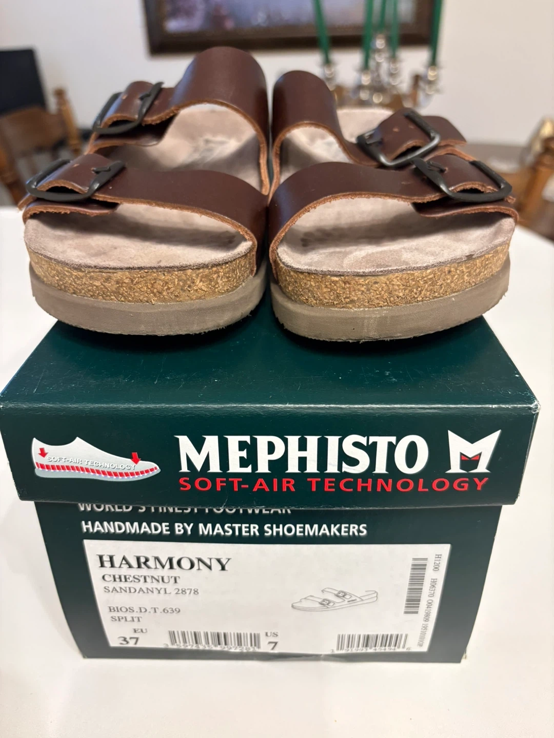 Mephisto women’s Harmony leather sandals size 7. Made in France. Brand new never worn. Purchased at Mephisto store June 2025.