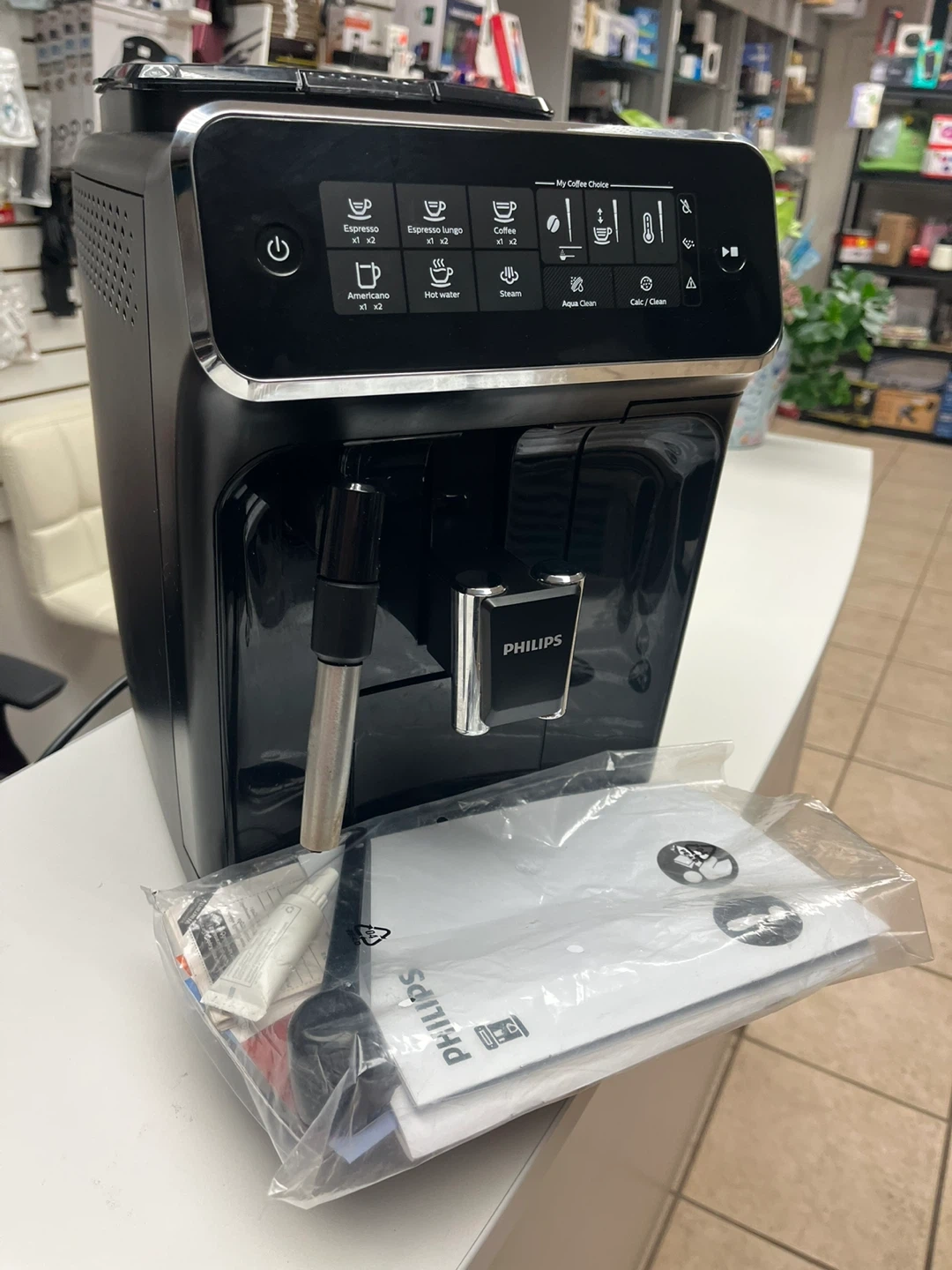 Philips 3200 Series Fully Automatic Espresso Machine with LatteGo Milk system & integrated grinder, 5 Coffee Pre-Sets, Intuitive Touch Display, 15-Bar Pressure, My Coffee Choice. like new