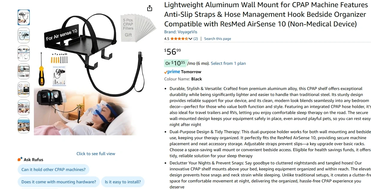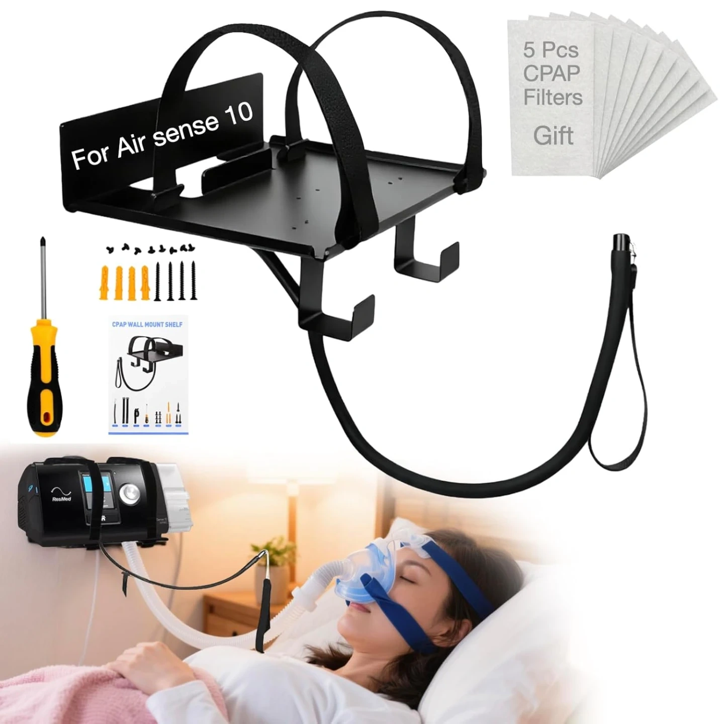 Lightweight Aluminum Wall Mount for CPAP Machine Features Anti-Slip Straps & Hose Management Hook Bedside Organizer Compatible with ResMed AirSense 10 (Non-Medical Device), Brand New in the Box/Sealed