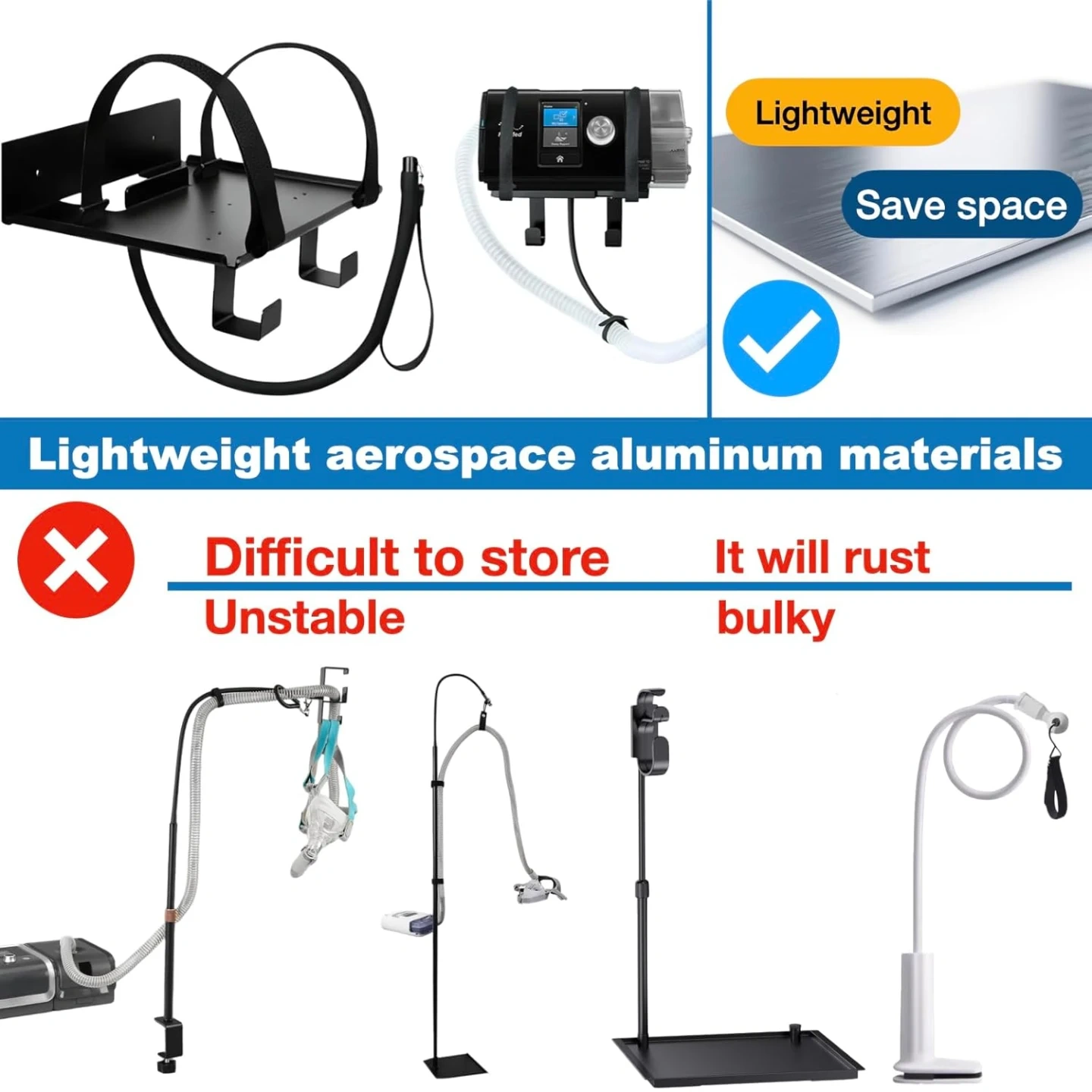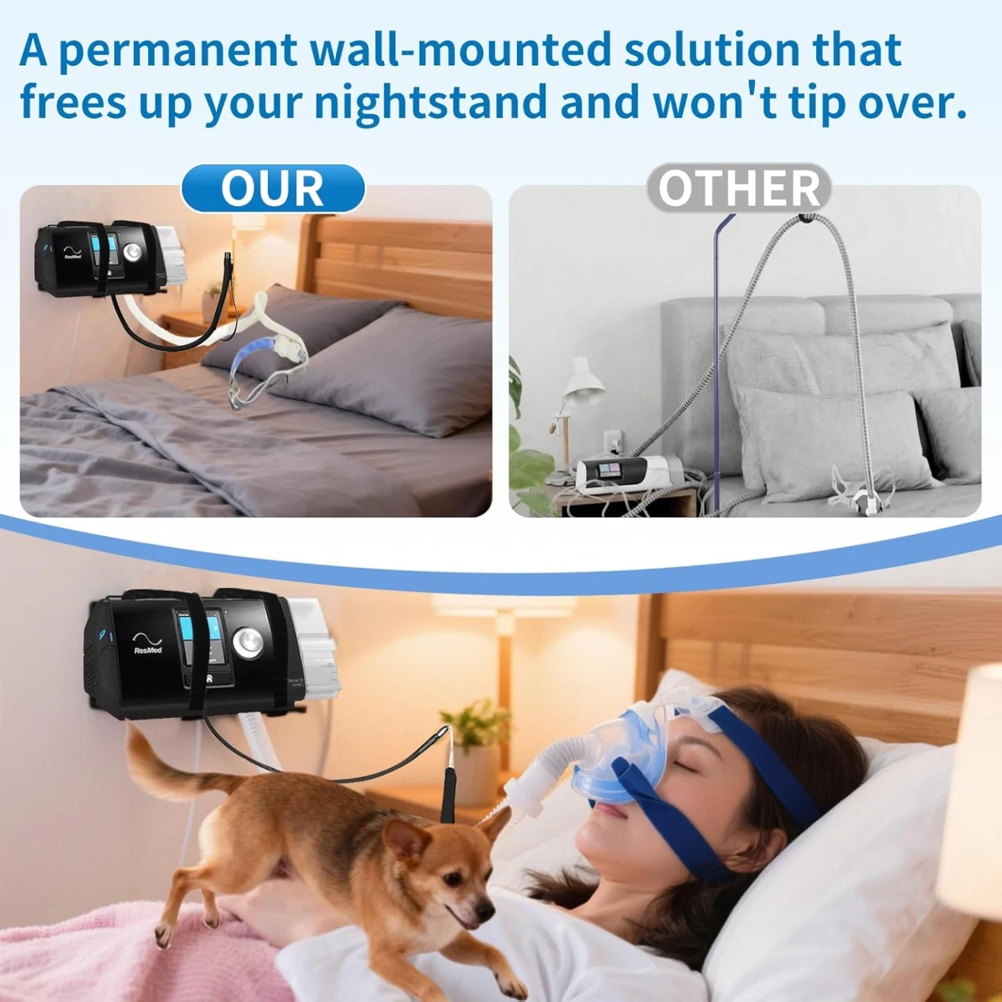 Save Space with All-in-One Design: Save 40% space with our 2025 upgraded CPAP wall mount and bedside stand. This all-in-one solution features a space-saving wall-mounted design to free up your nightstand, plus an integrated CPAP hose holder to keep tubing organized. As the perfect CPAP stand bedside solution, it lets you easily move your machine from bedside to wall while maintaining a clean, clutter-free sleep area. With its smart CPAP hose holder and versatile mounting options, it's more efficient than ordinary stands