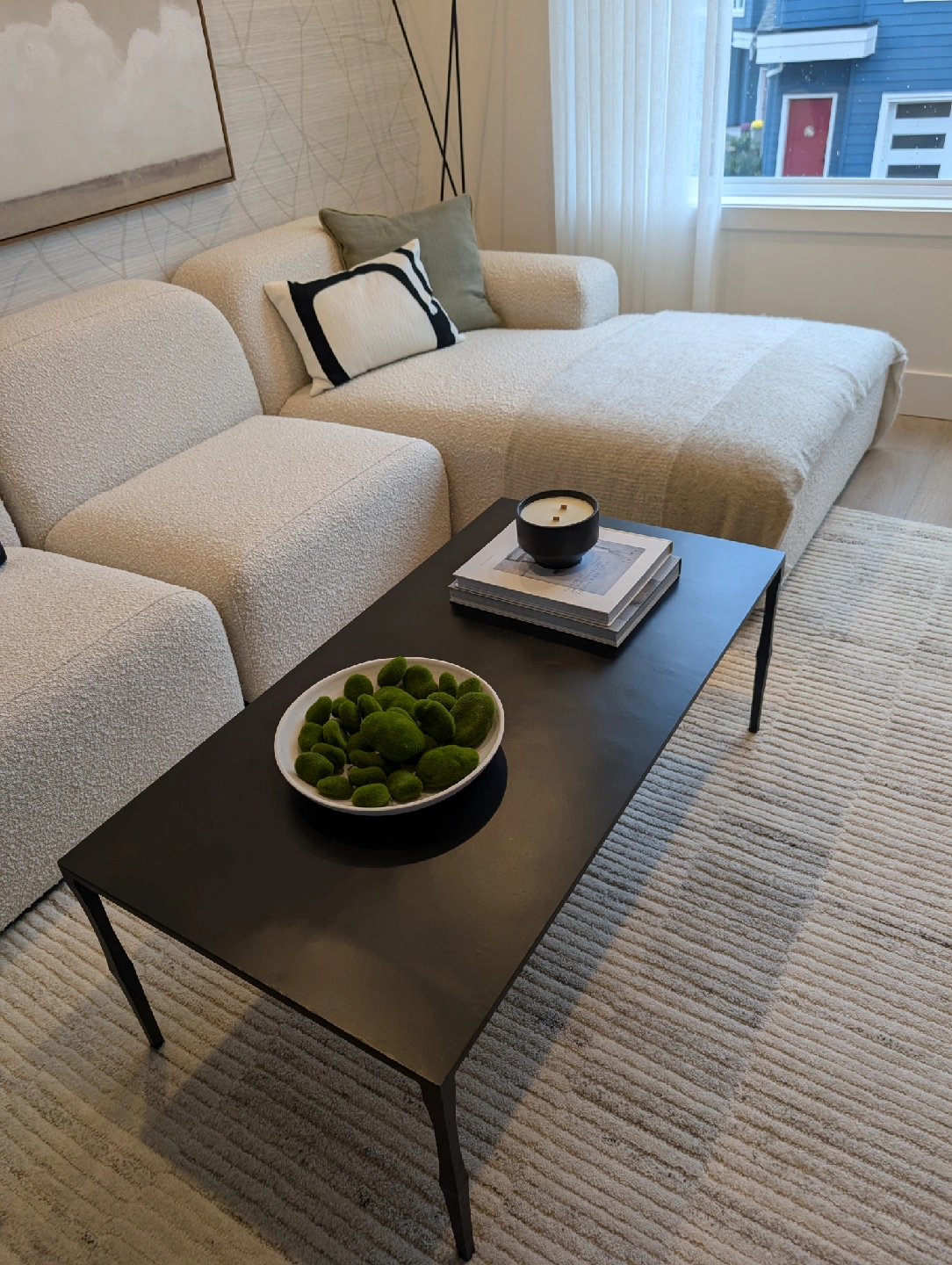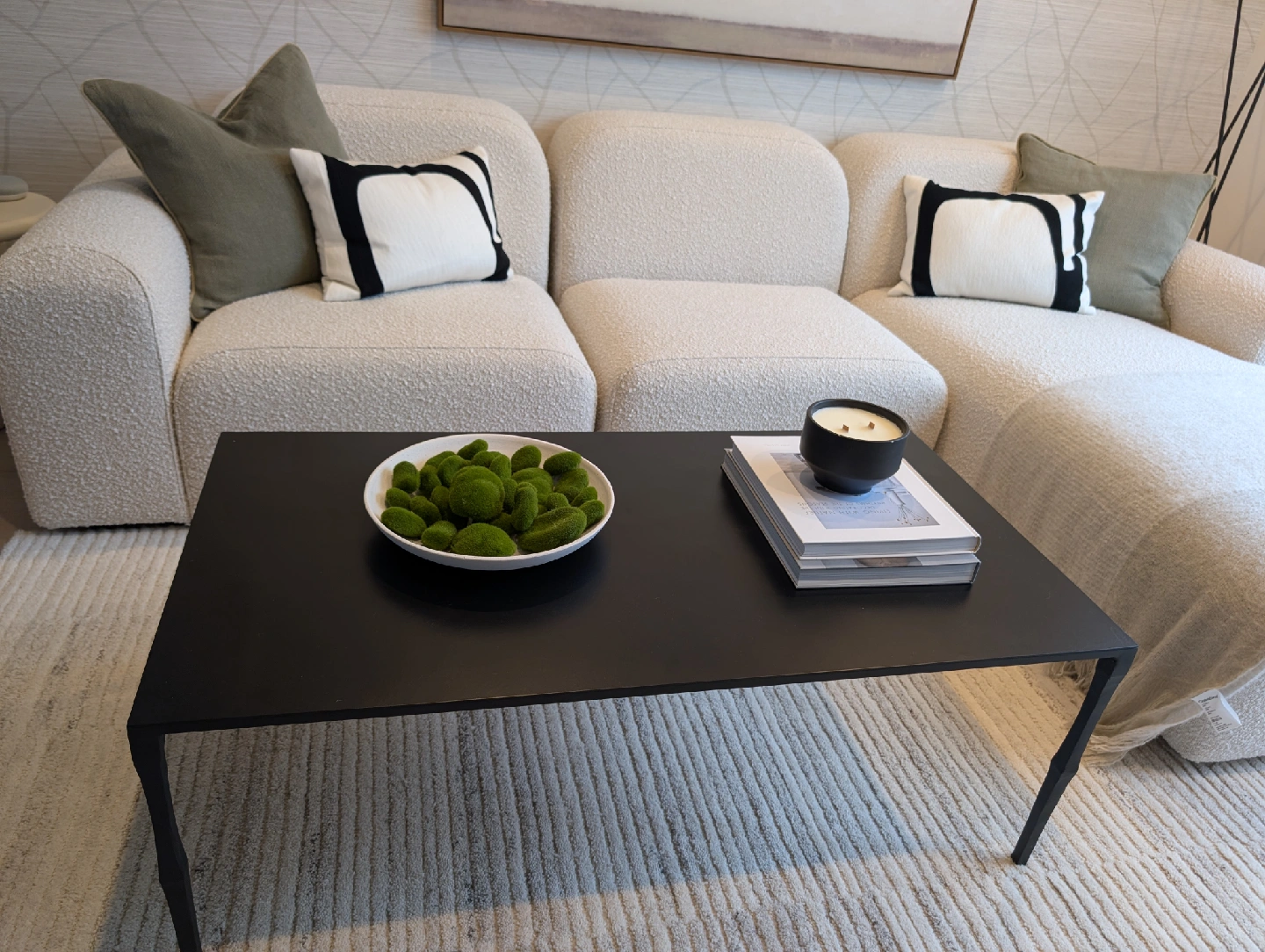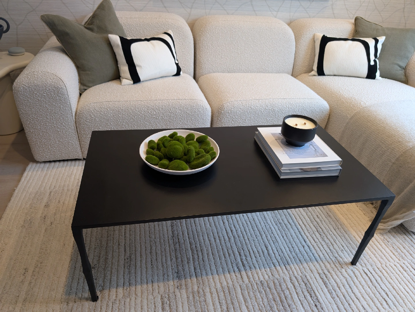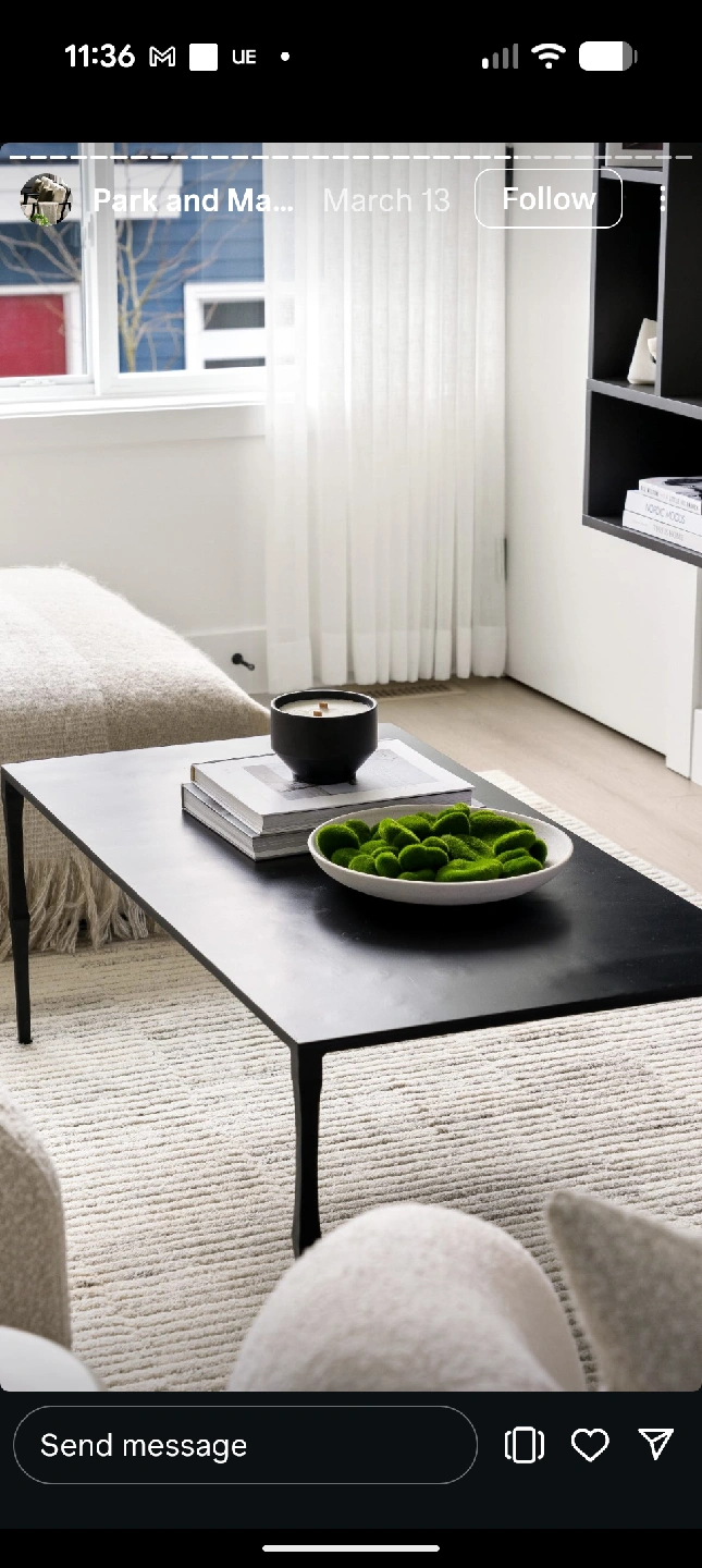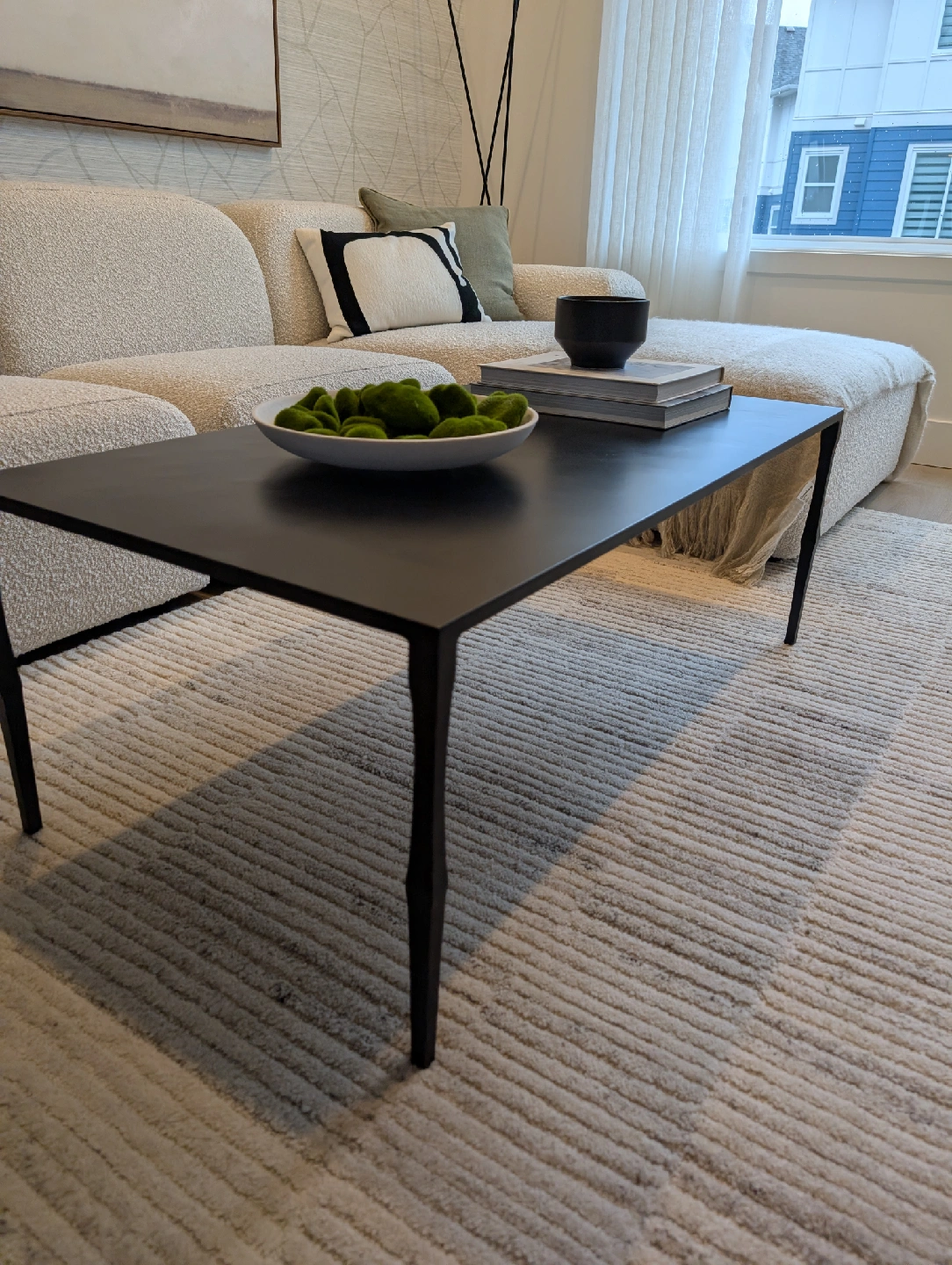 60Elegant and modern industrial coffee table by Mercana, model Timothy I (69256). Crafted from solid iron with a matte black finish, this statement piece adds a bold, minimalist touch to any living room. Details: Dimensions: 42” L × 22” W × 15.5” H Material: Iron (matte black finish) Retail price: ~$1,100 CAD + taxes (Moko Home / Mercana) Condition: Like new – from a display home, never personally used but has some scratched from the decor item being moved around. Scratches can be easily hidden under your own decor items books etc. Quality control certified (QC PASS sticker still intact)