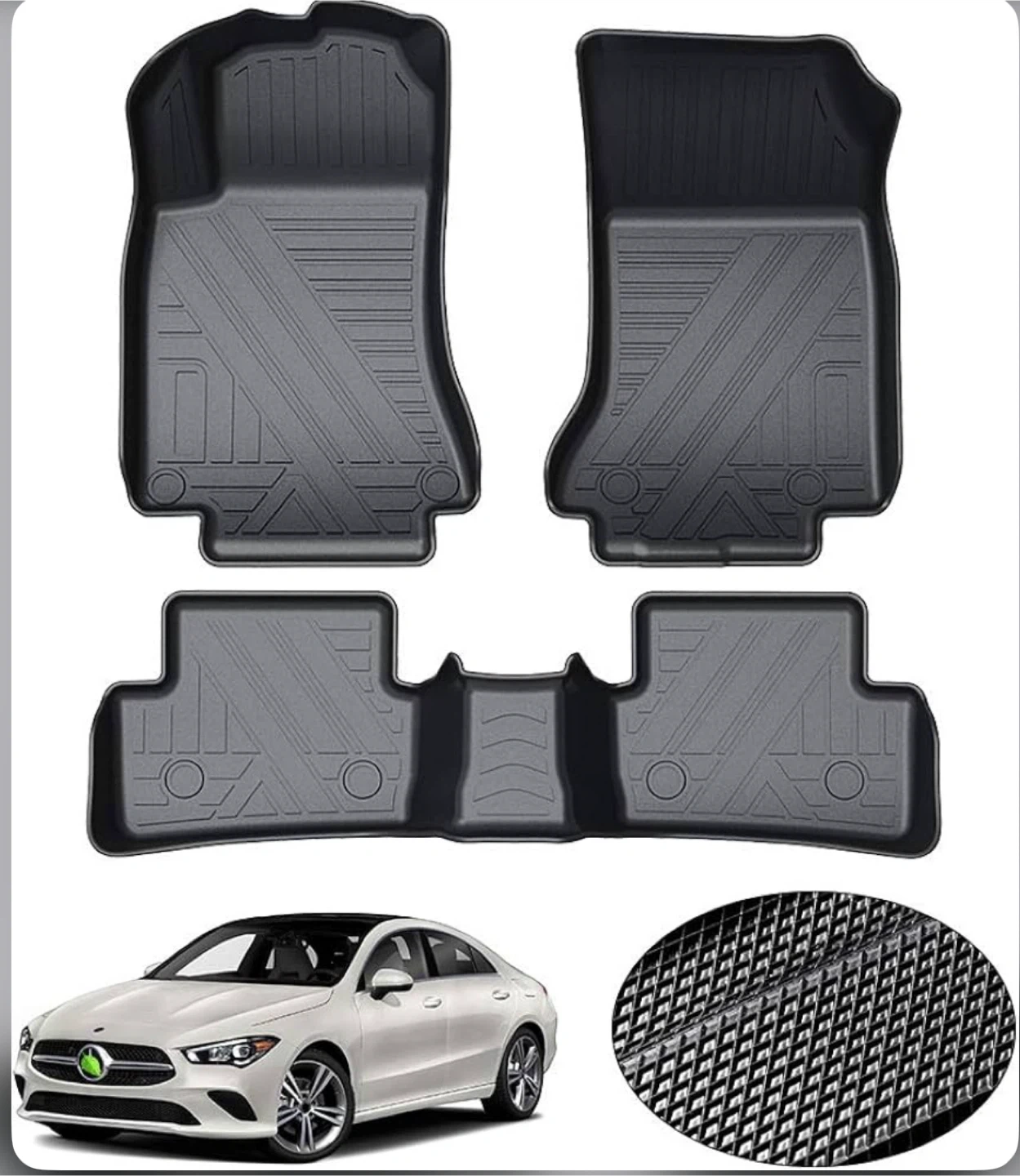10These all-weather floor mats are designed to fit a Mercedes-Benz . They are a great way to protect your car's interior from dirt, mud, and snow. The mats are black and have a textured surface to help keep your feet from slipping.