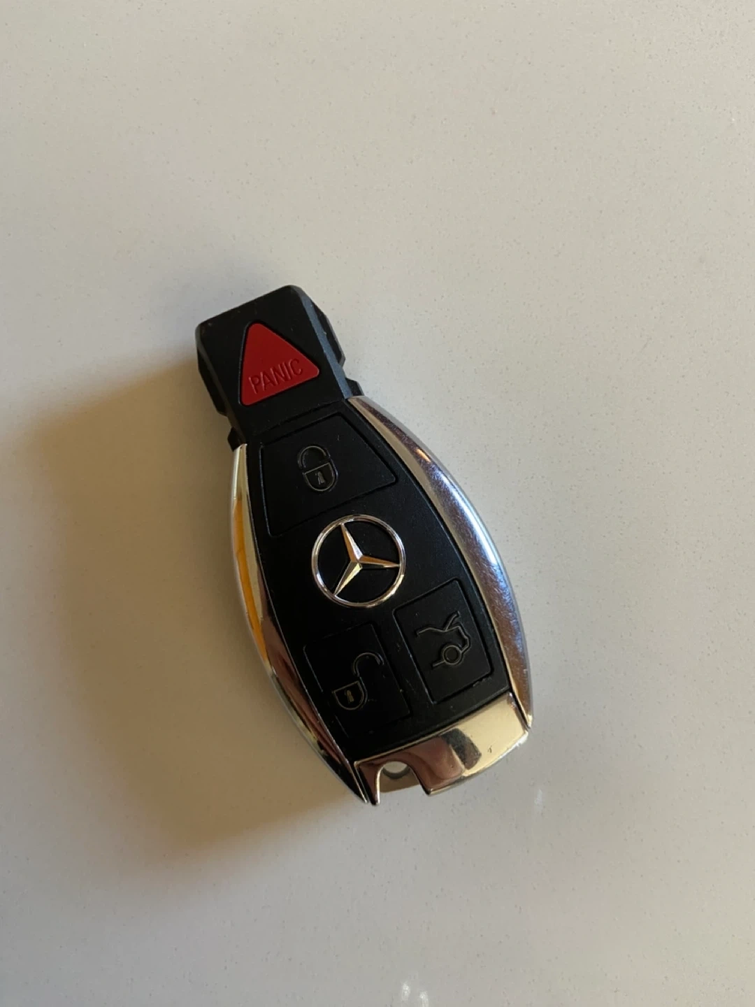 Selling a used Mercedes-Benz car key fob. It's in good condition and fully functional. Perfect as a spare or replacement!