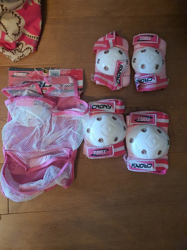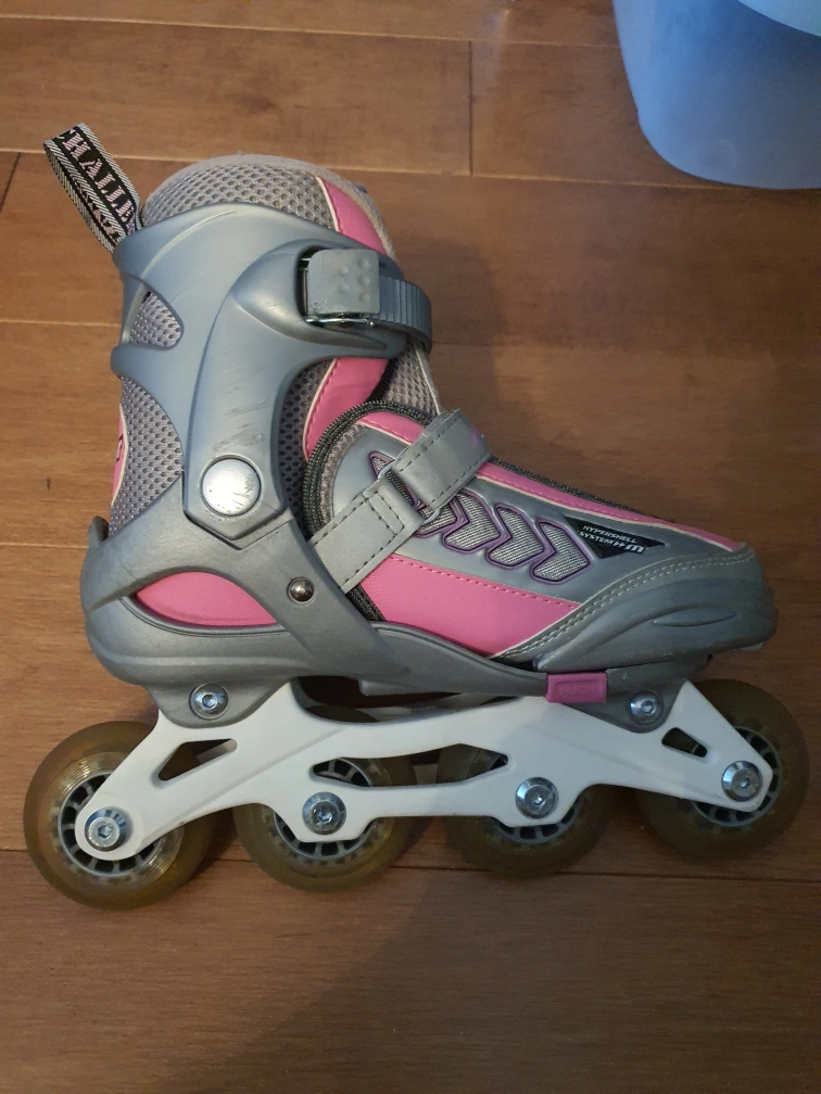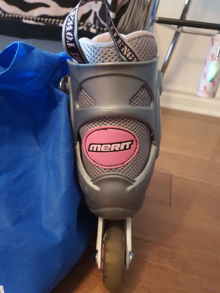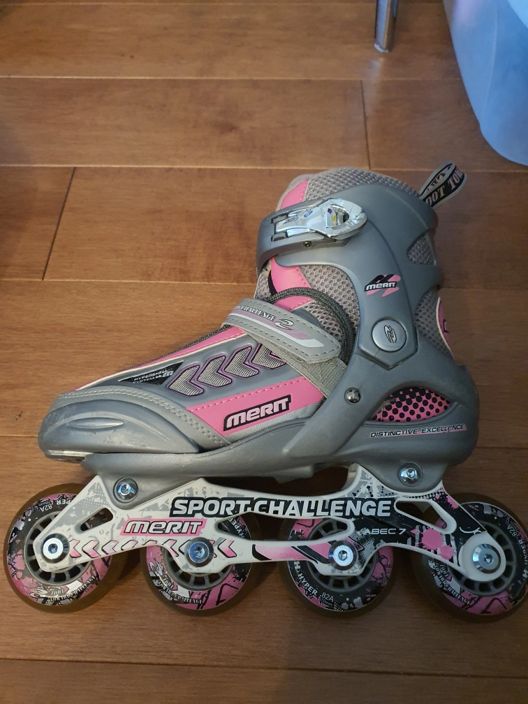 60Selling a pair of Merit Sport Challenge roller blades. They're pink and grey and in good condition. The size is 205-225 mm. 6 piece protective gear included.