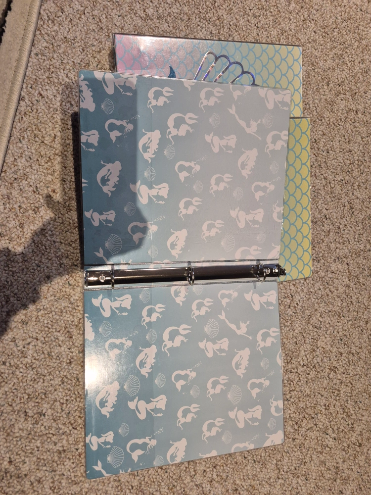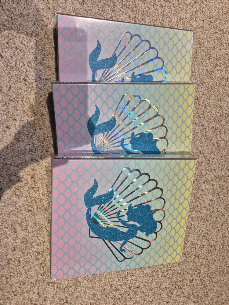Selling a set of three mermaid-themed 3-ring binders! These binders feature a cute mermaid design on the front and inside covers. Perfect for school, work, or organizing your documents ! $2/each
