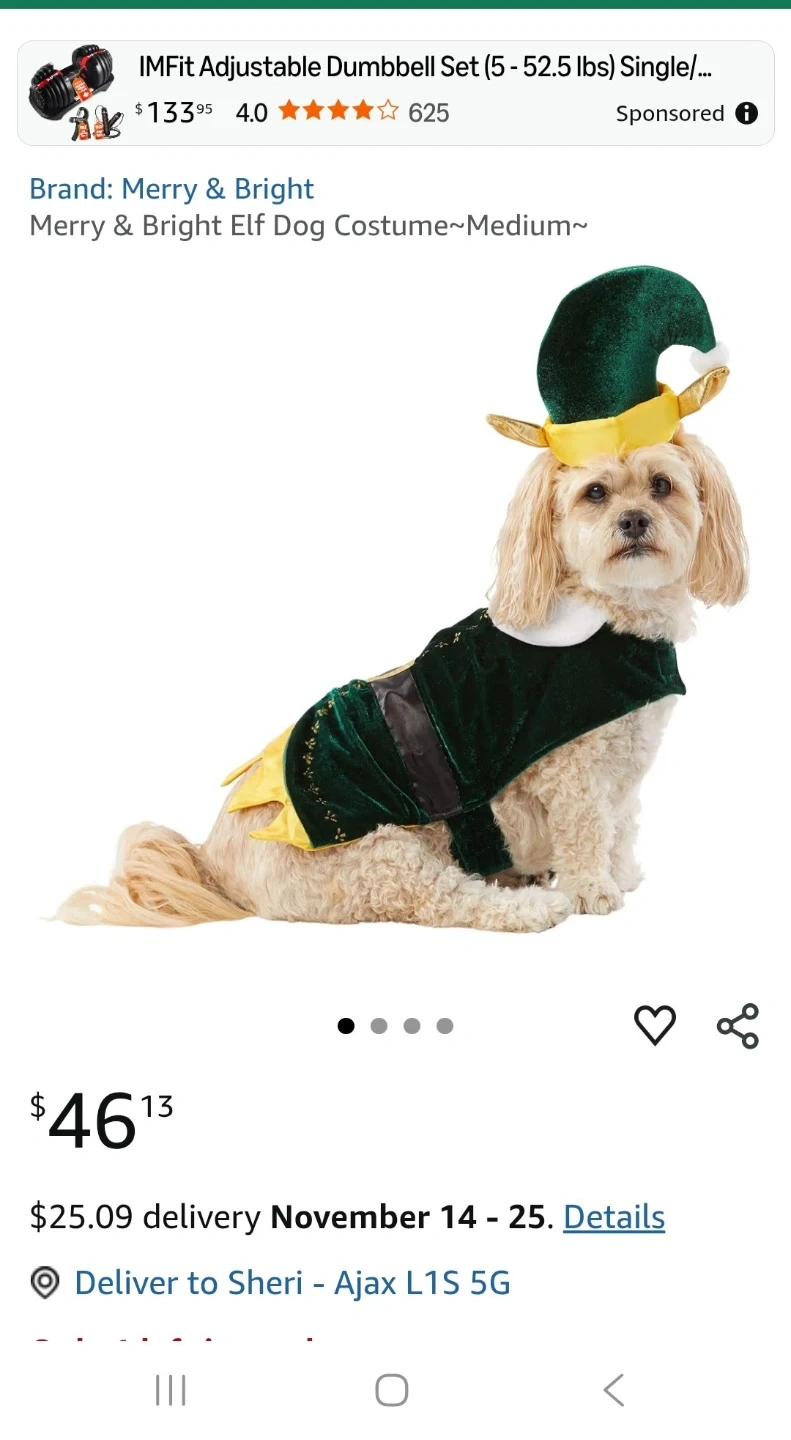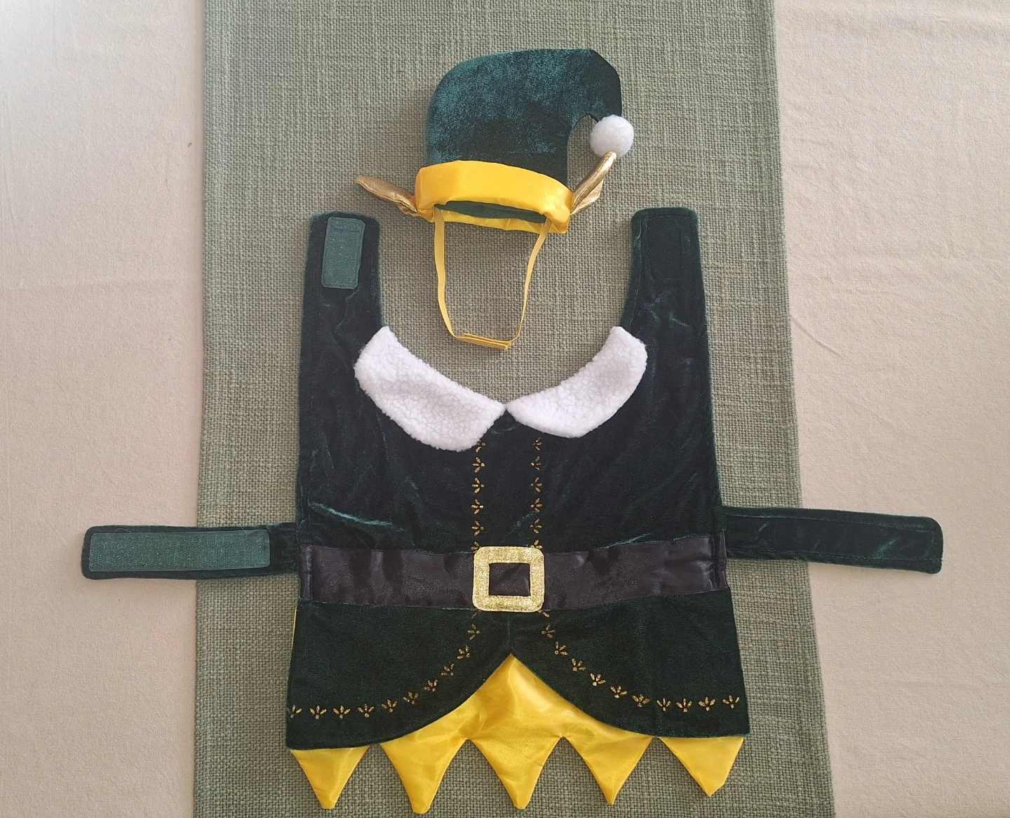 33Get your furry friend ready for the holidays with this adorable Merry & Bright Elf Dog Costume! It's a size medium and features a festive green and yellow design. Excellent Condition Asking $15