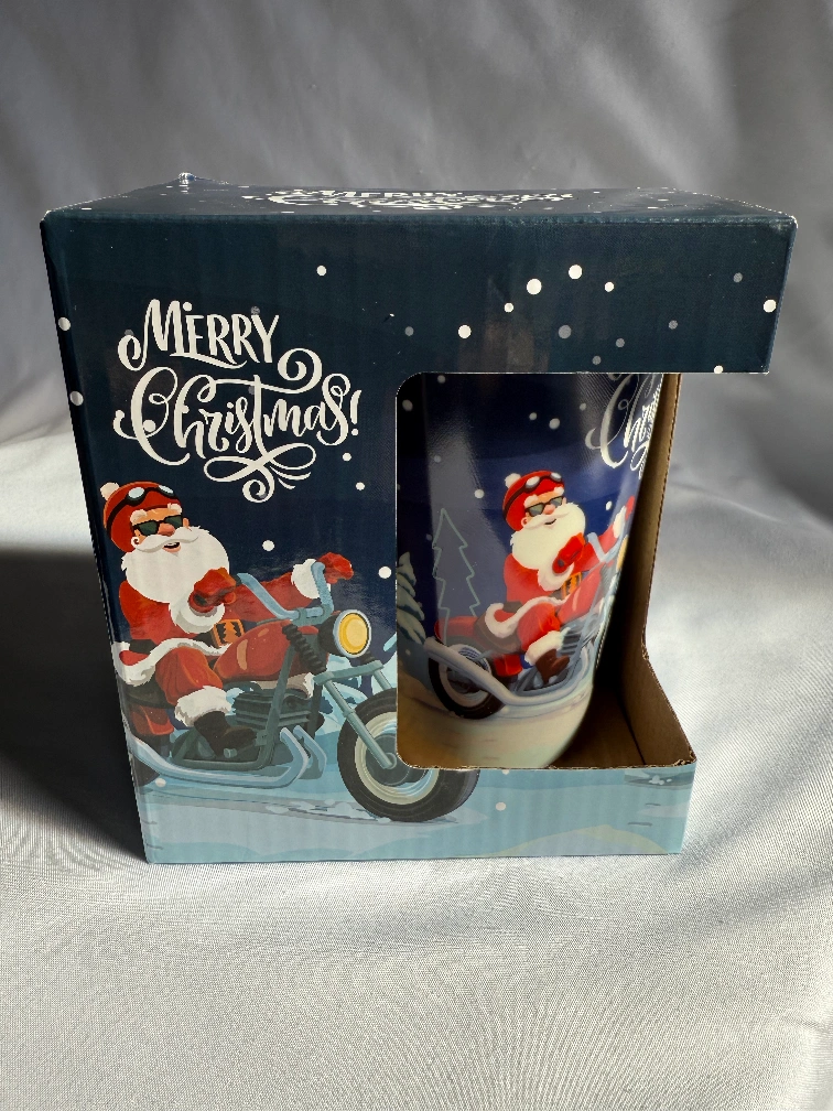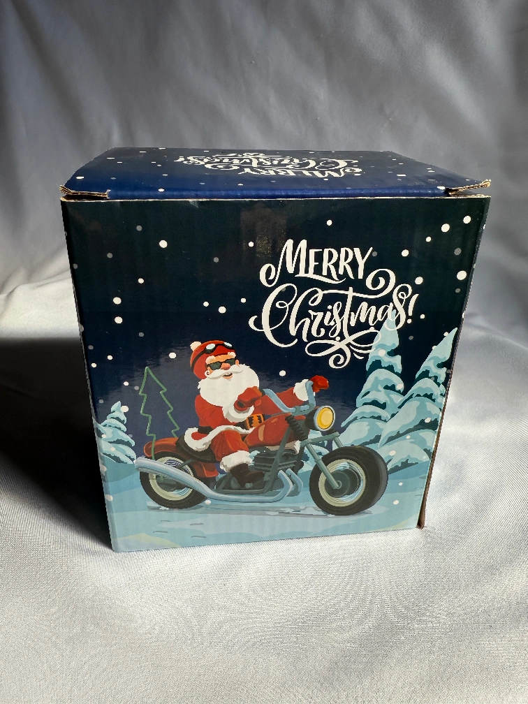 Get into the festive spirit with this brand new Merry Christmas ceramic mug! It's new in the original box, featuring Santa on a motorcycle. This mug is perfect for enjoying your favourite warm beverage during the holiday season!