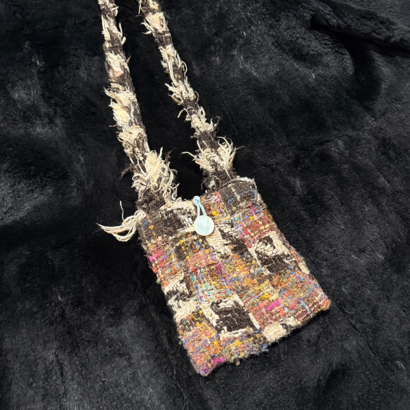 One and Only! Ultra-Lightweight! This is a luxury handmade shoulder bag with a colorful woven design! The strap is a unique braided style. It's in great condition and ready for a new owner. Size: 6" (W) x 6.5" (H) Strap Length: 32" Capacity: Perfect size for your essentials—you can carry your phone, keys, and cards with ease.