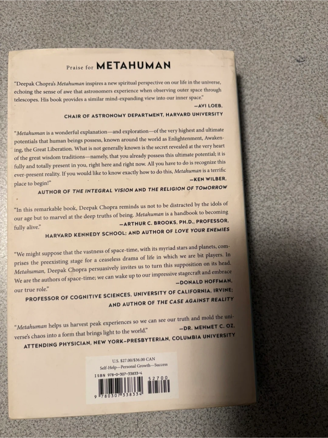 Selling a copy of "Meta Human" by Deepak Chopra. It's a New York Times Bestselling Author book that helps you unleash your infinite potential. It falls under the Self-Help, Personal Growth, and Success category. A great read for anyone interested in personal development