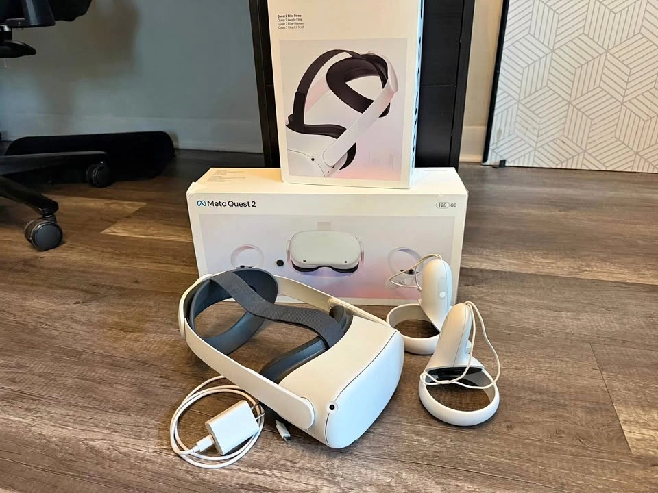 Quest 2 VR headset, with elite strap, original boxes, and USB-C charging cable. Available for pickup!
